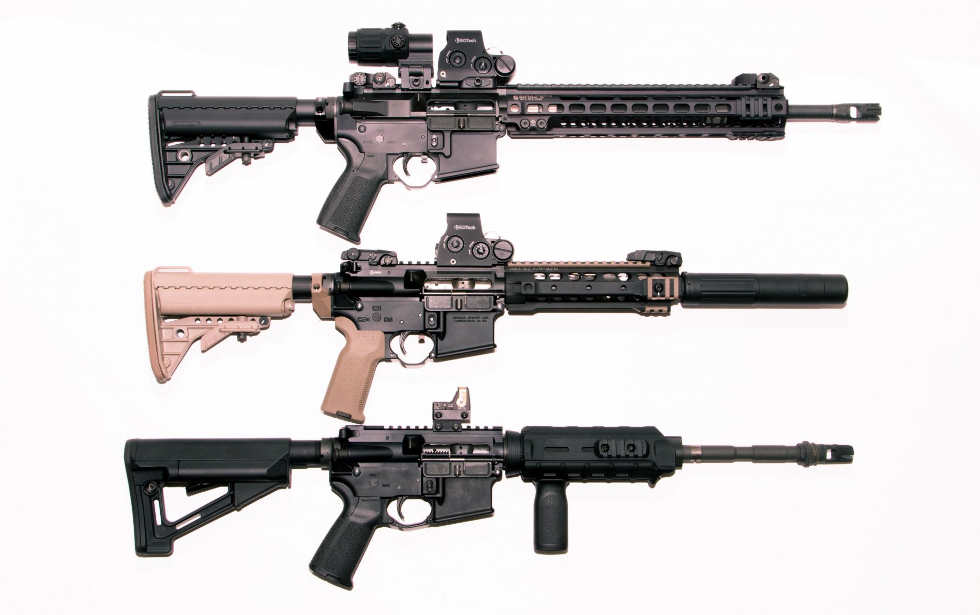 Trois fusils d'assaut AR-15