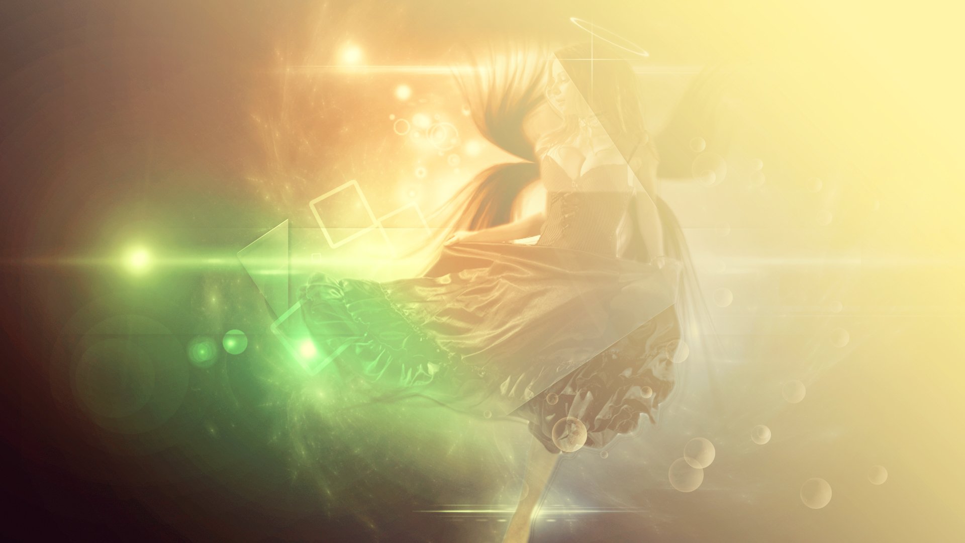 Fille avec des ailes pendantes en robe de demoiselle d'honneur sur fond noir