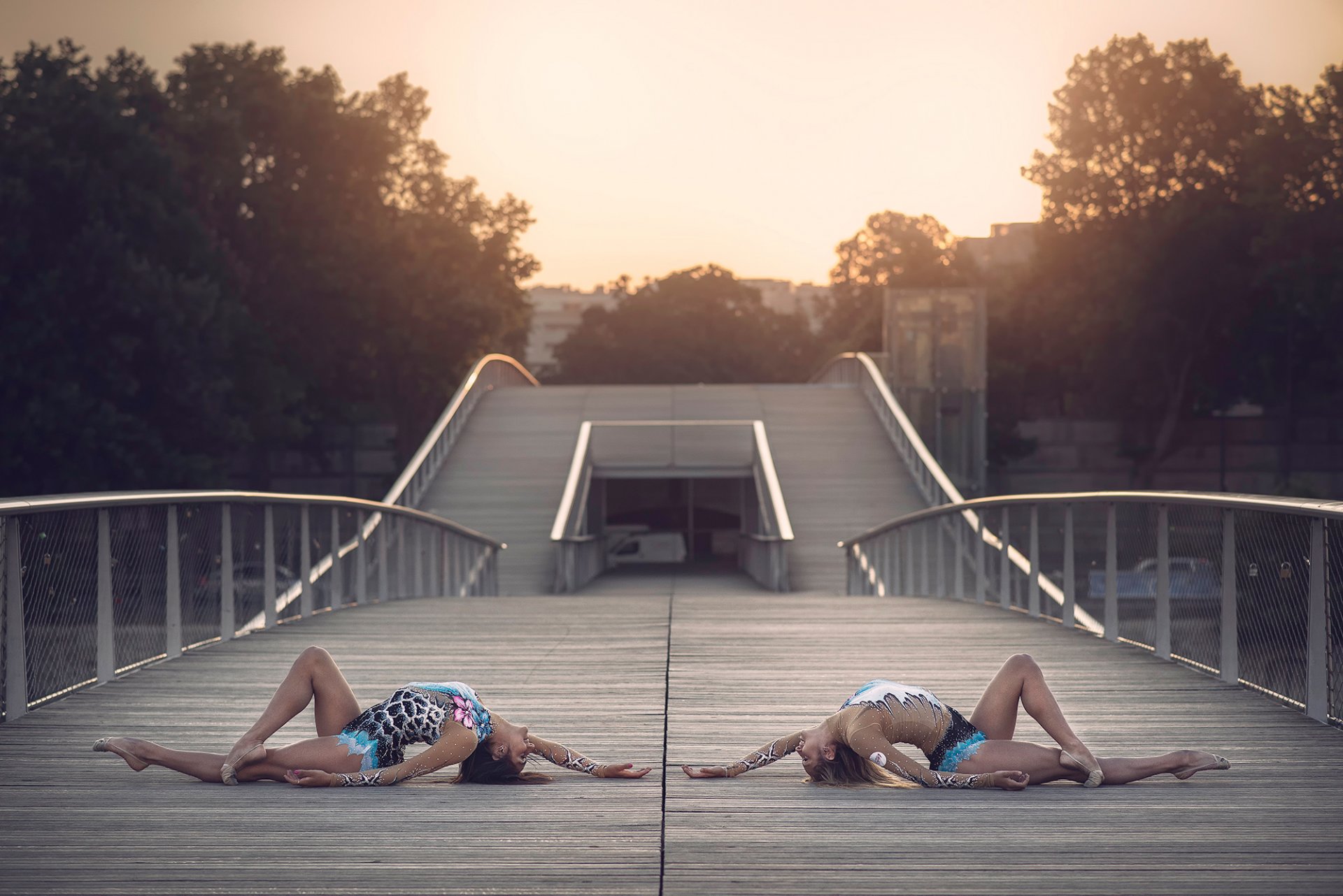 Les filles gymnastes sur le pont. un truc compliqué sur le pontLes filles gymnastes sur le pont. Un truc compliqué sur le pont