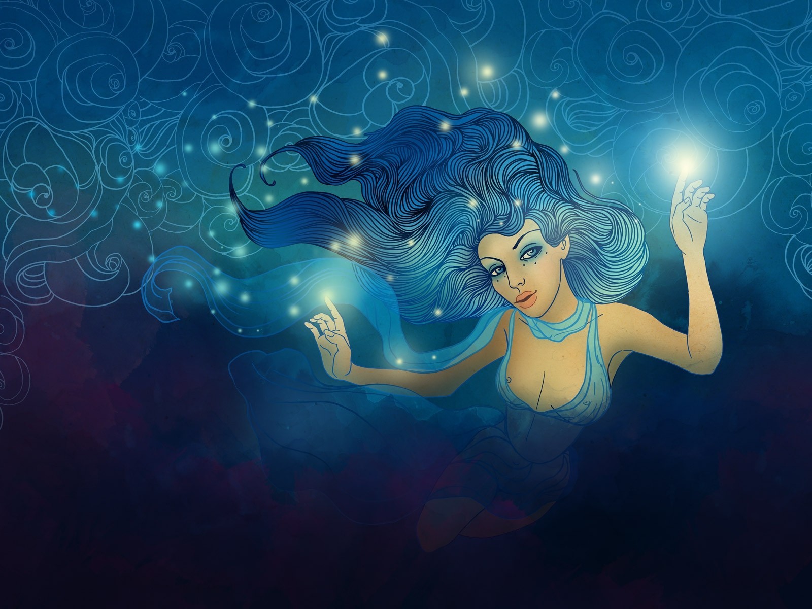 Dessin d une fille aux cheveux bleus