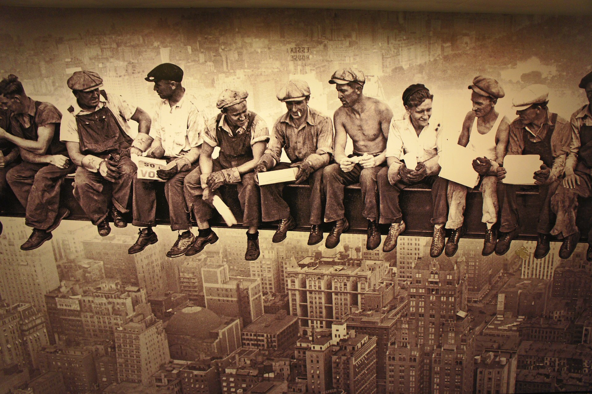 Les constructeurs de new york se reposent de travail de la hauteur immenseLes constructeurs de New York se reposent de travail de la hauteur immense