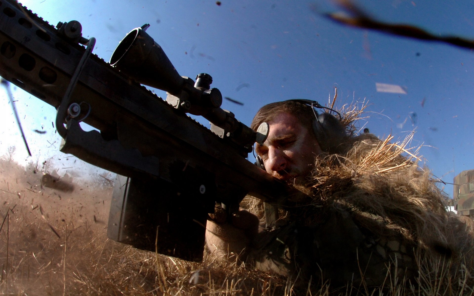 Sniper déguisé dans l'herbe et se trouve