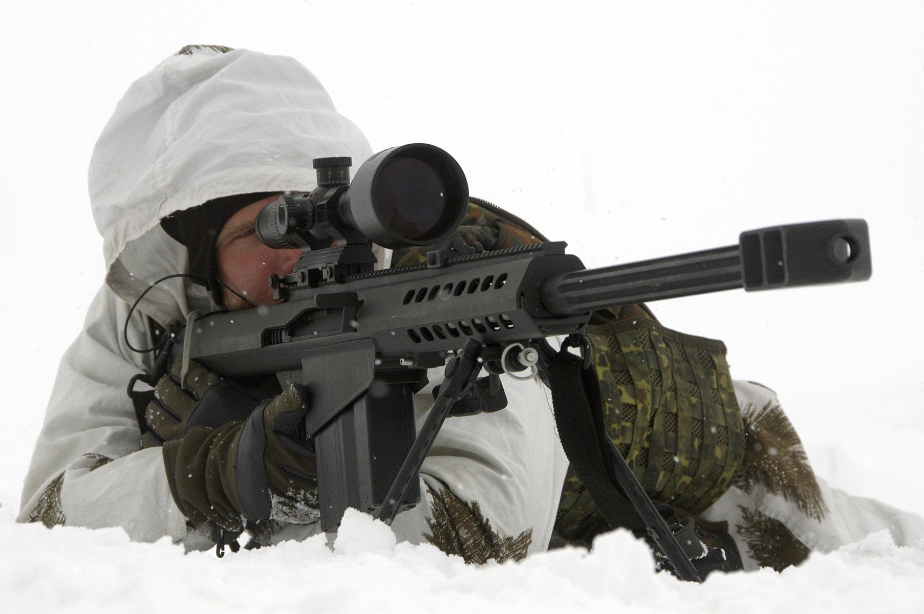 Tireur d'élite se cachant près de la terre enneigéeTireur d'élite se cachant près de la terre enneigée