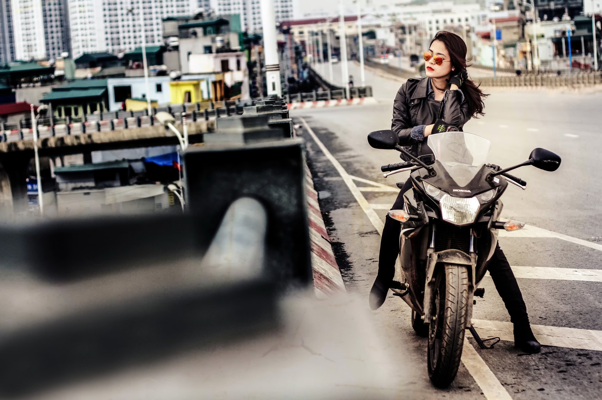 Honda blanc avec inscription à bord, photo de style vintageHonda blanc avec inscription à bord, photo de style Vintage