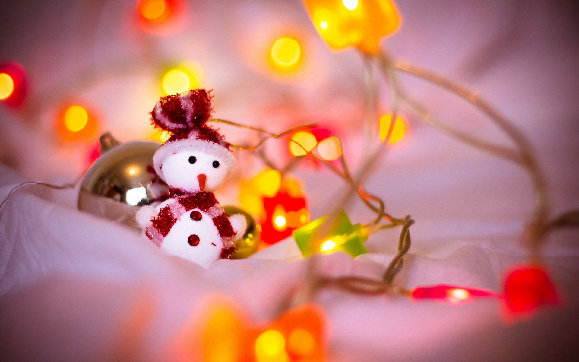 Bonhomme de neige jouet dans les lumières pour noëlBonhomme de neige jouet dans les lumières pour Noël