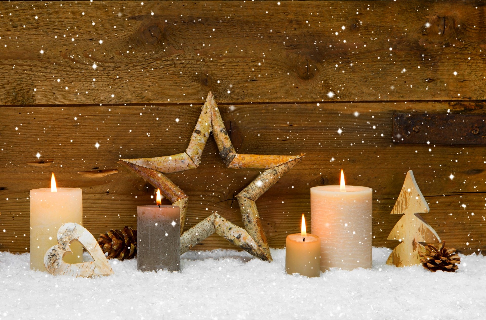 Composition de bougies allumées sur la neige