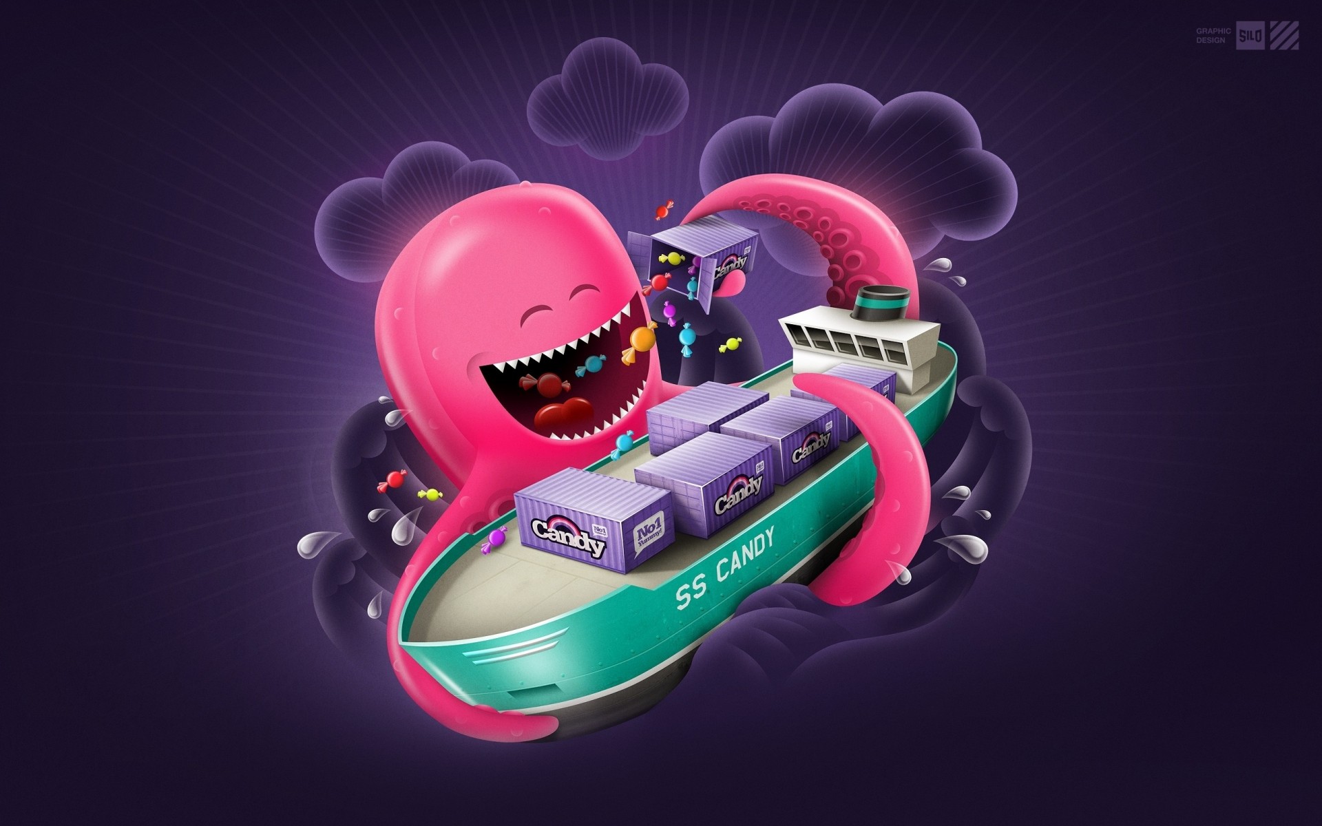Croquis d'un navire dans la mer bleue sur fond de coucher de soleil