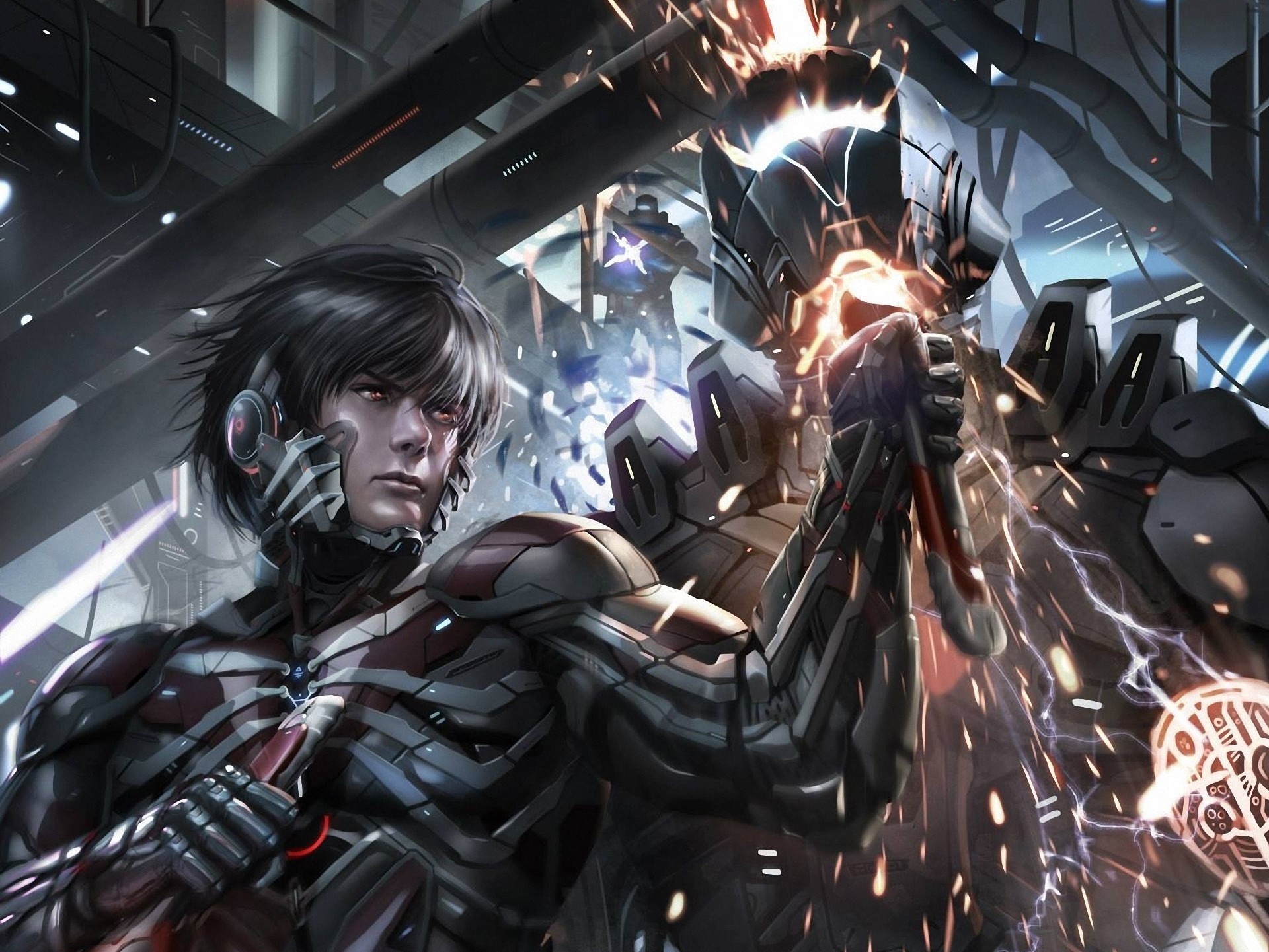 Guerriers avec des armes à la main pendant la bataille. lointain avenirGuerriers avec des armes à la main pendant la bataille. Lointain avenir