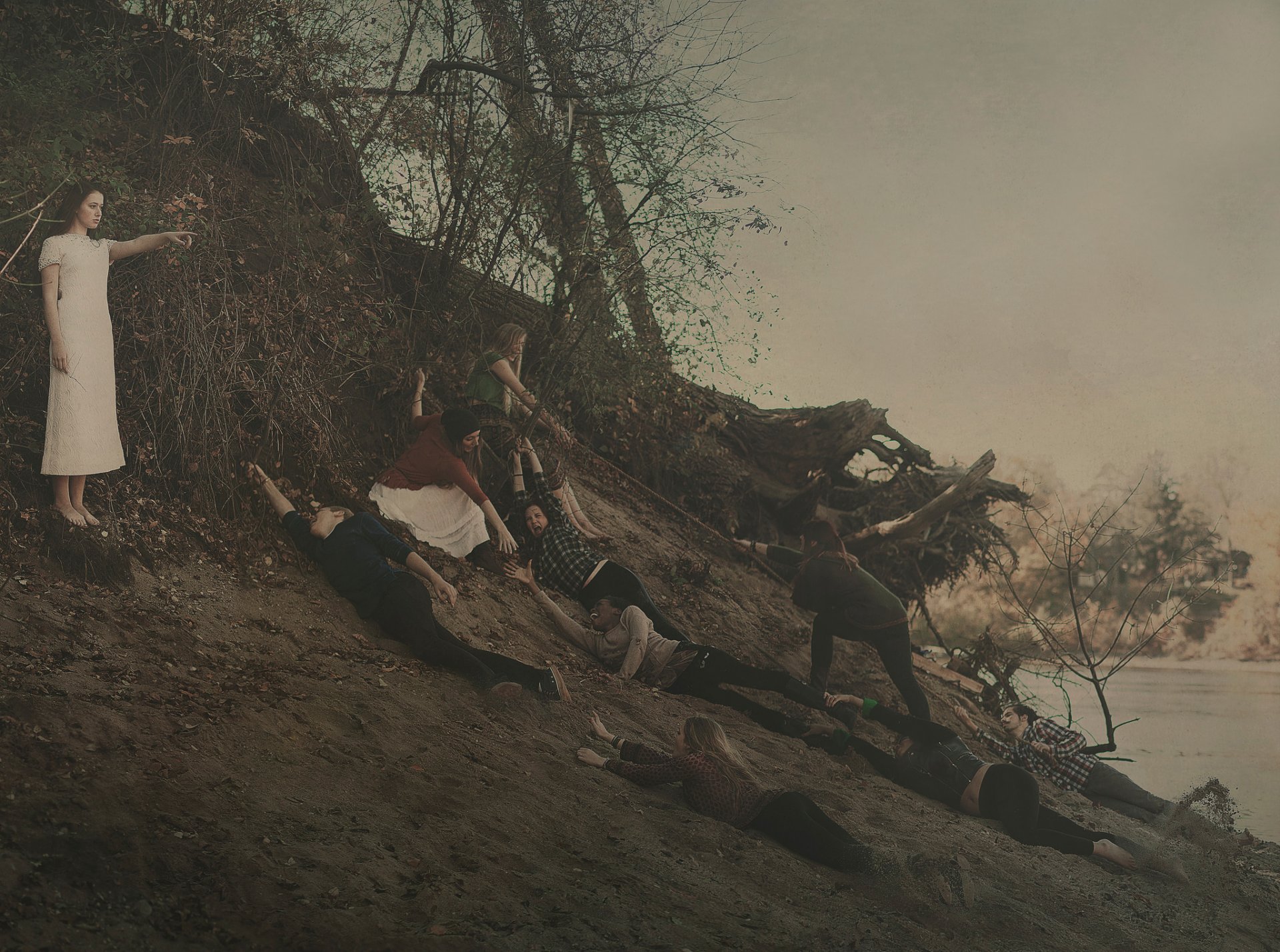 La jeune fille ordonne aux gens de se lever sur le précipiceLa jeune fille ordonne aux gens de se lever sur le précipice