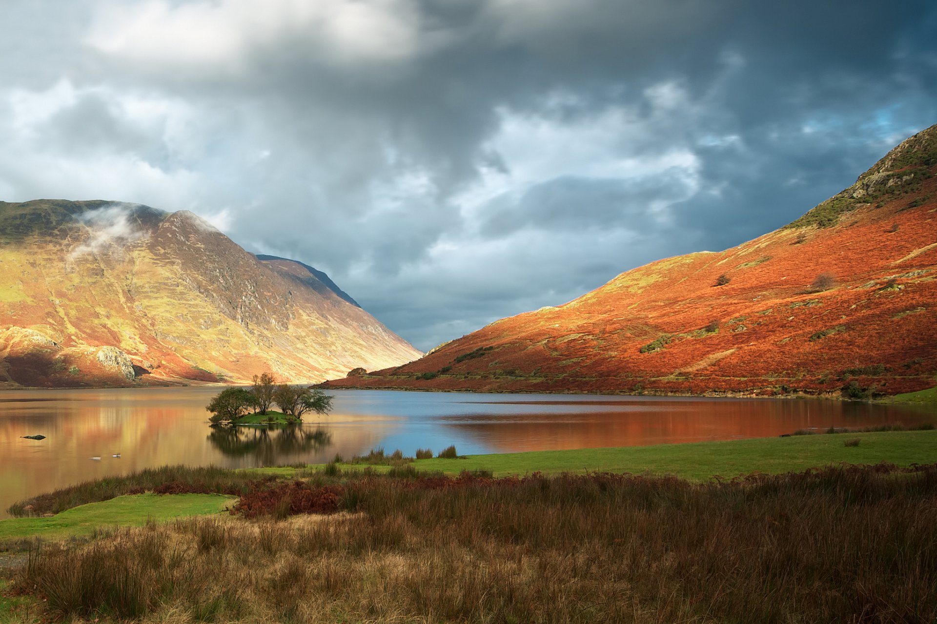 Lac d'automne dans les montagnes sur une journée ensoleilléeLac d'automne dans les montagnes sur une journée ensoleillée
