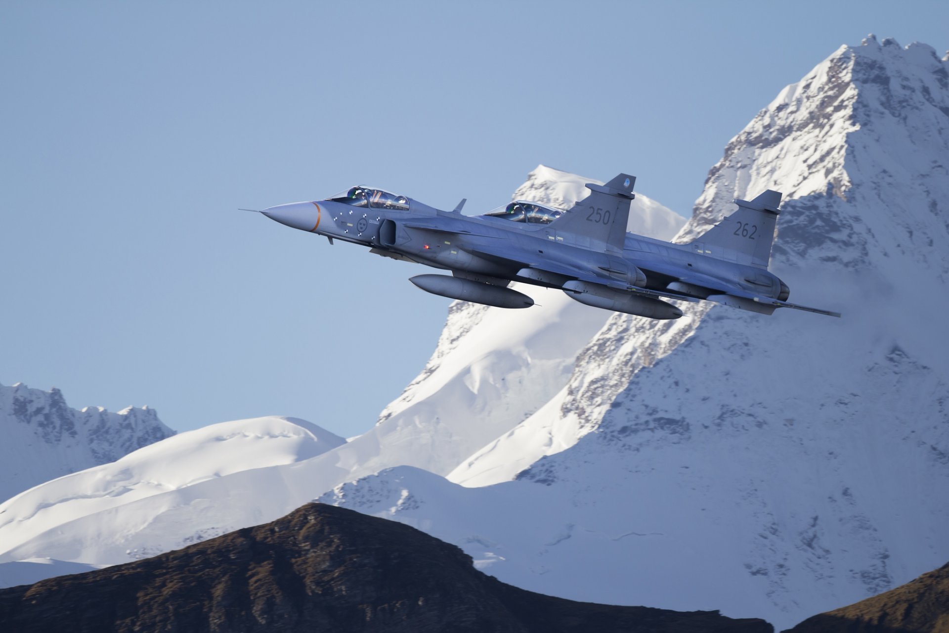 Vol envoûtant sur des avions de chasse au-dessus des montagnes