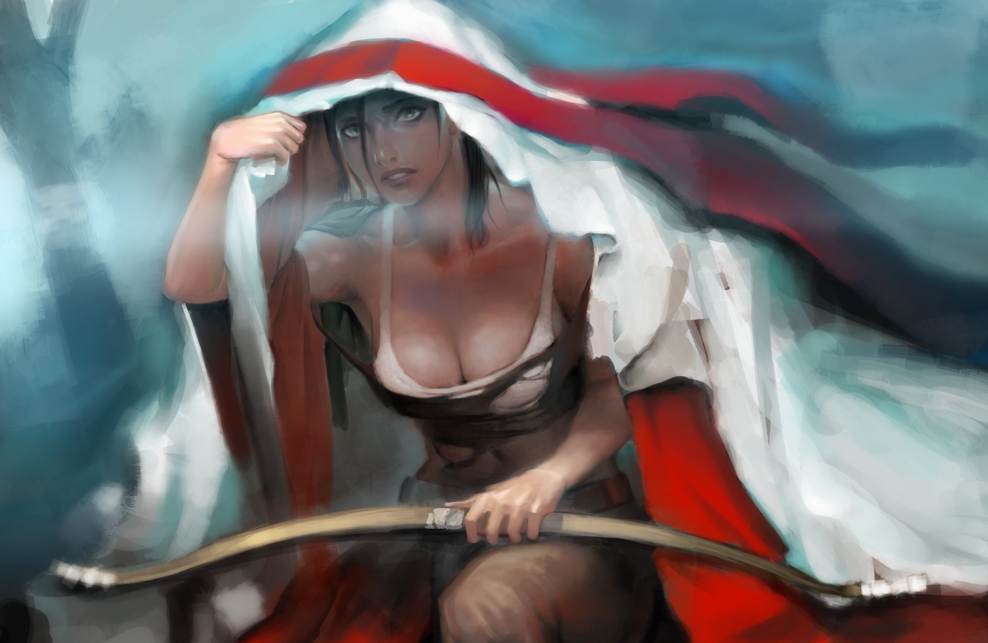 Peinture d'art de Lara Croft aux cheveux rouges