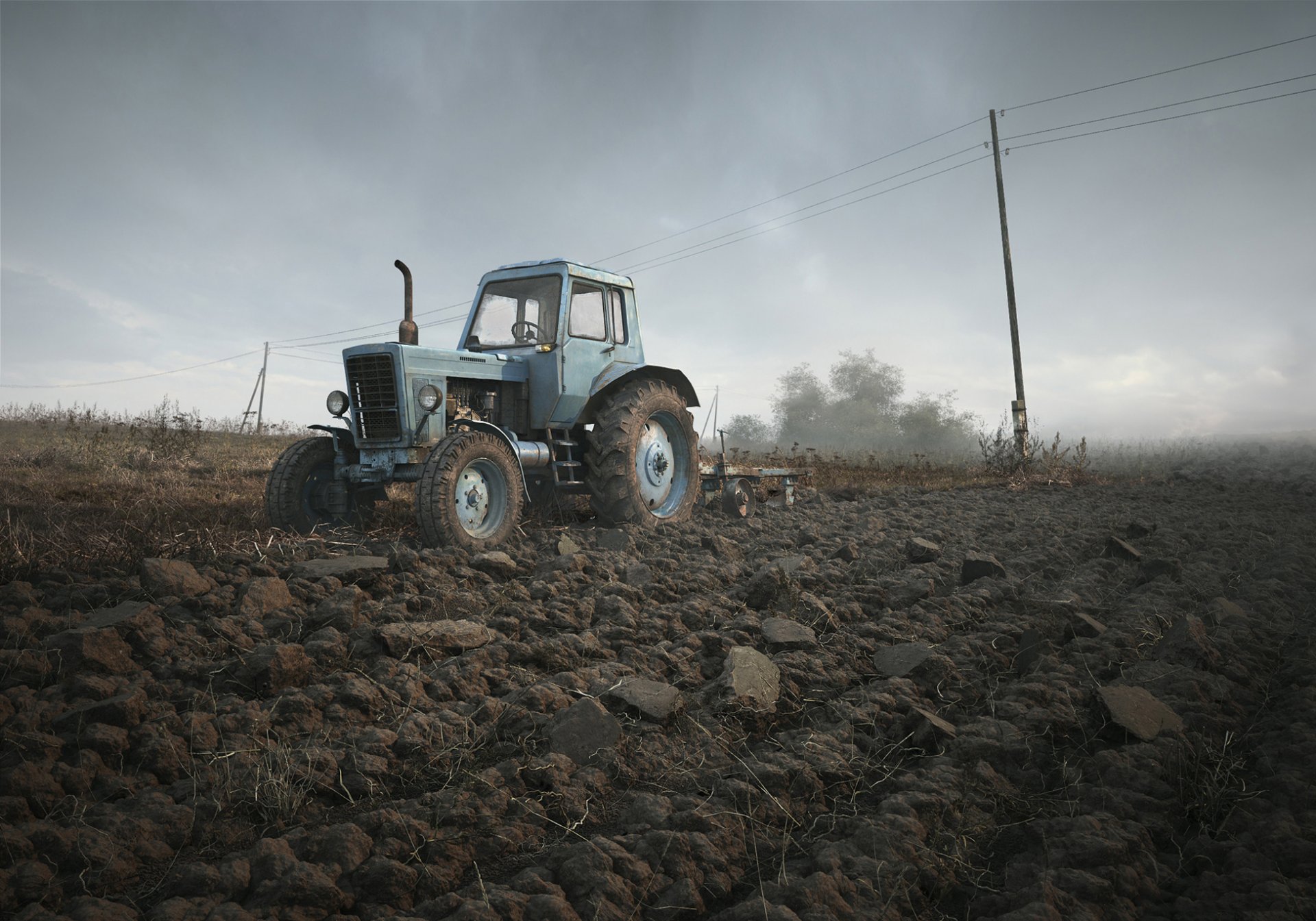 Tracteur biélorusse traite le champ pour l'ensemencement