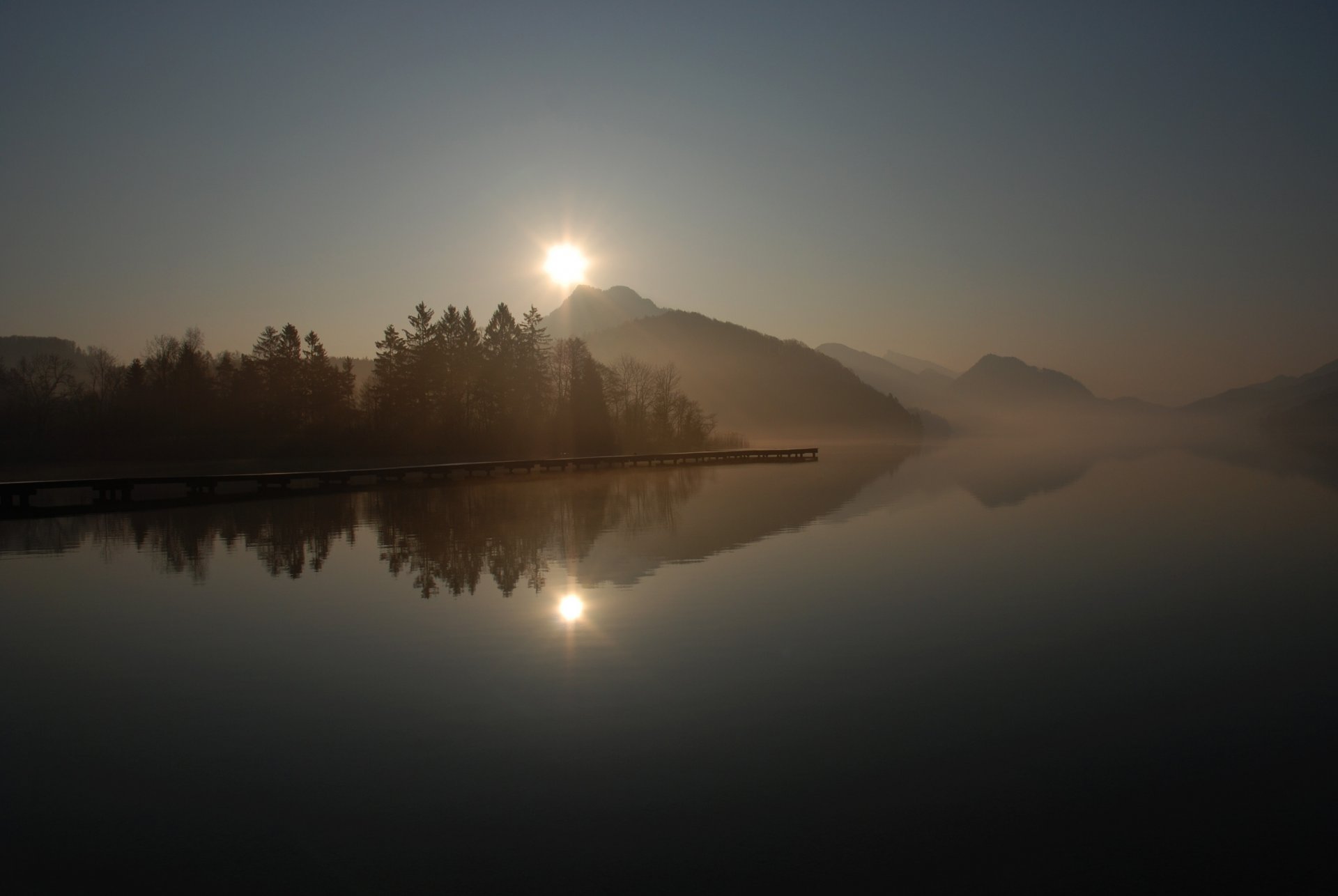 Le lever du soleil, de la réflexion des rayons dans le lacLe lever du soleil, de la réflexion des rayons dans le lac