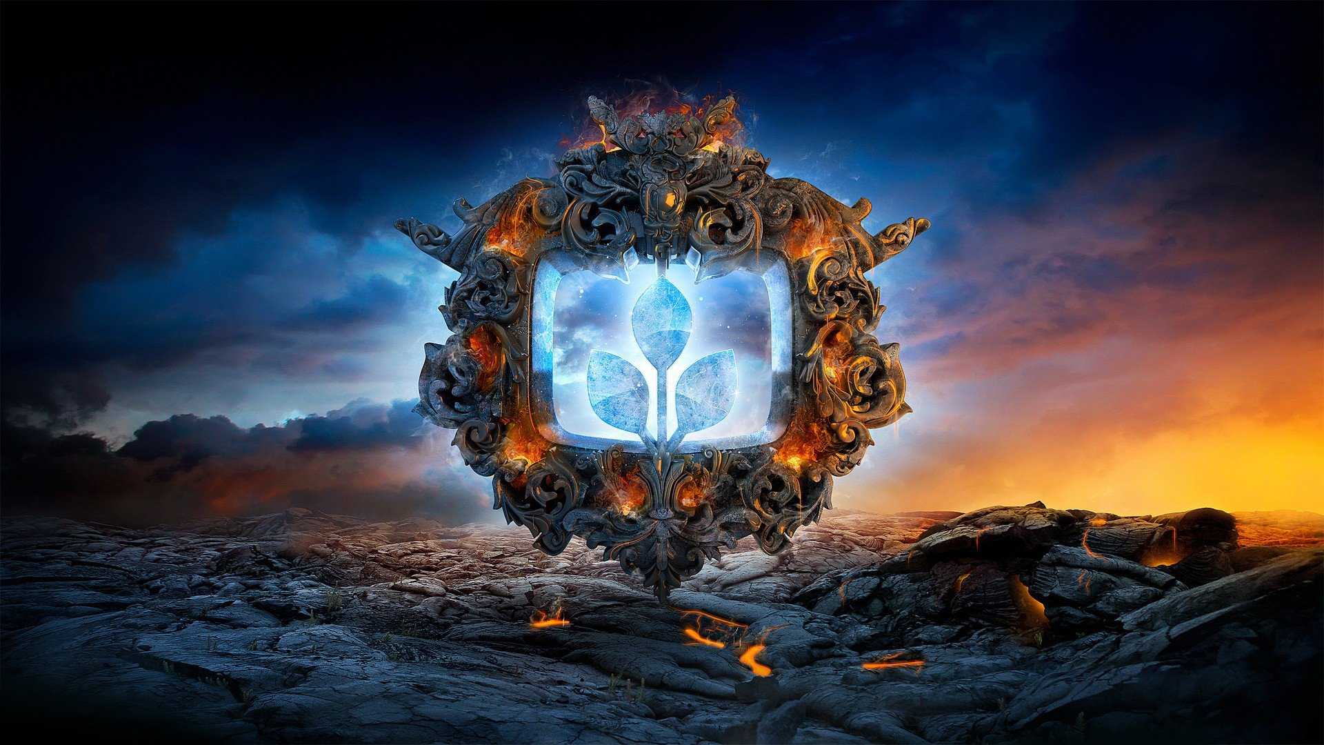 Calme sur le lac au crépuscule. Montagne à l'horizon