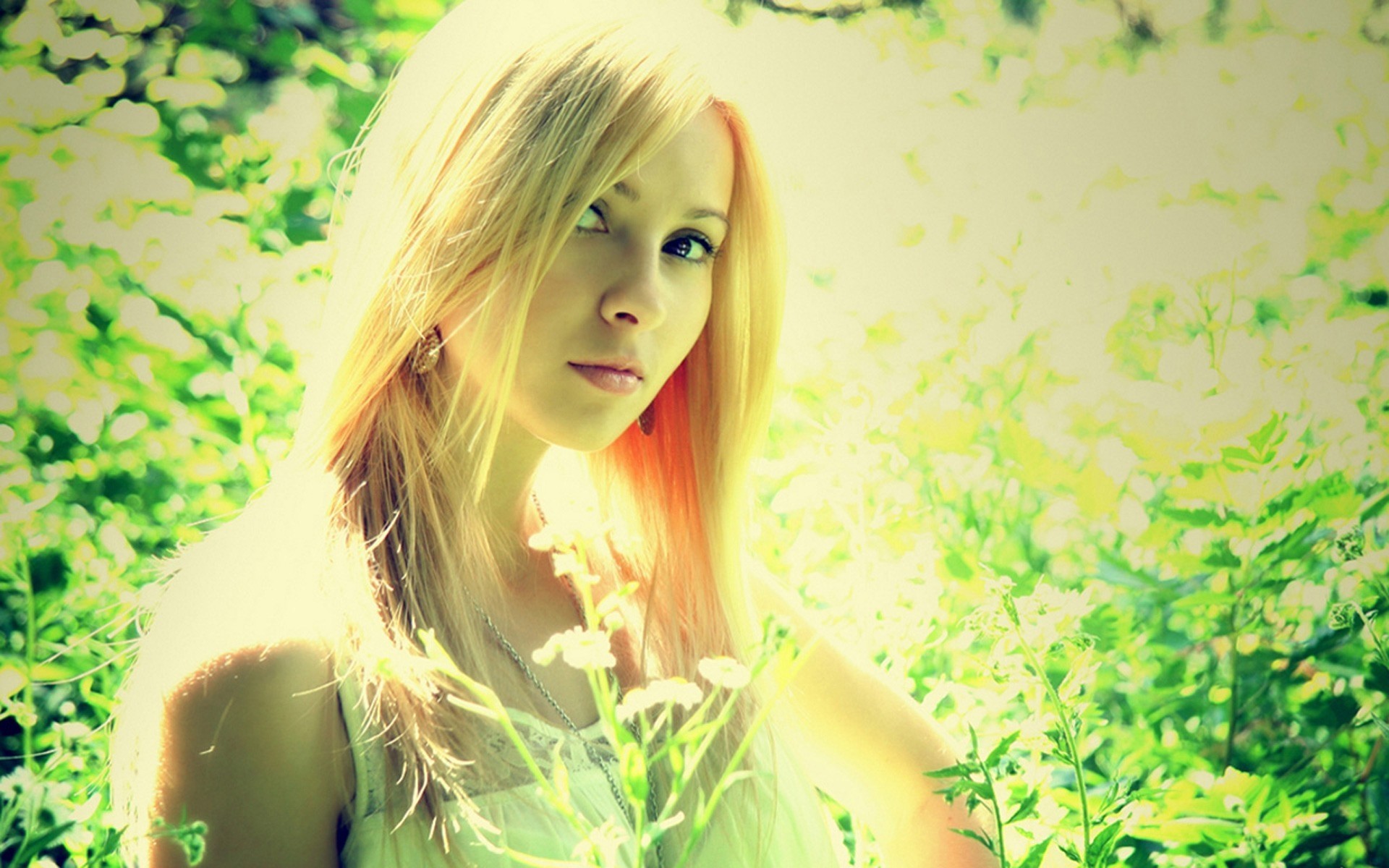Blonde au regard mystérieux, éclairée par le soleilBlonde au regard mystérieux, éclairée par le soleil