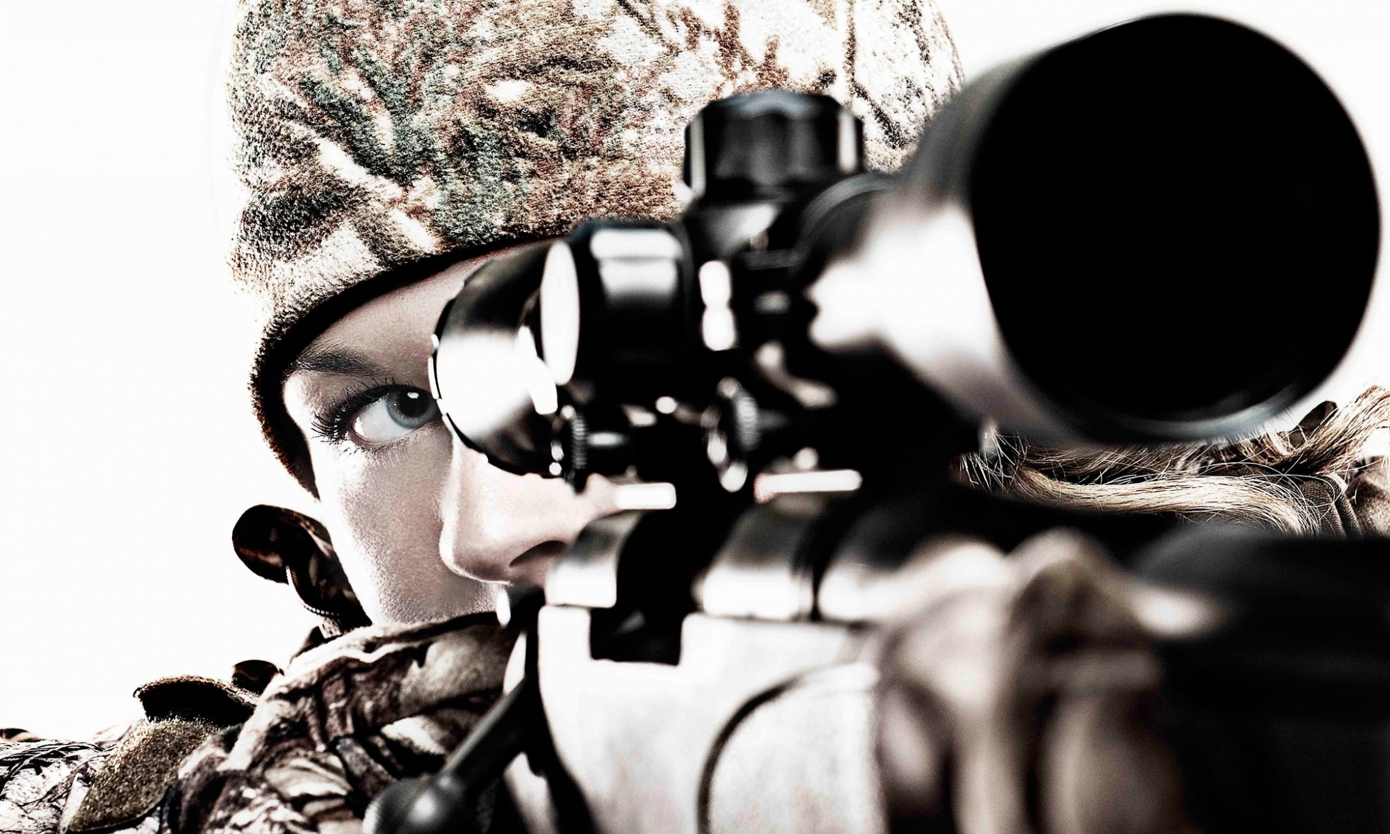 La jeune fille sniper regarde dans le viseur