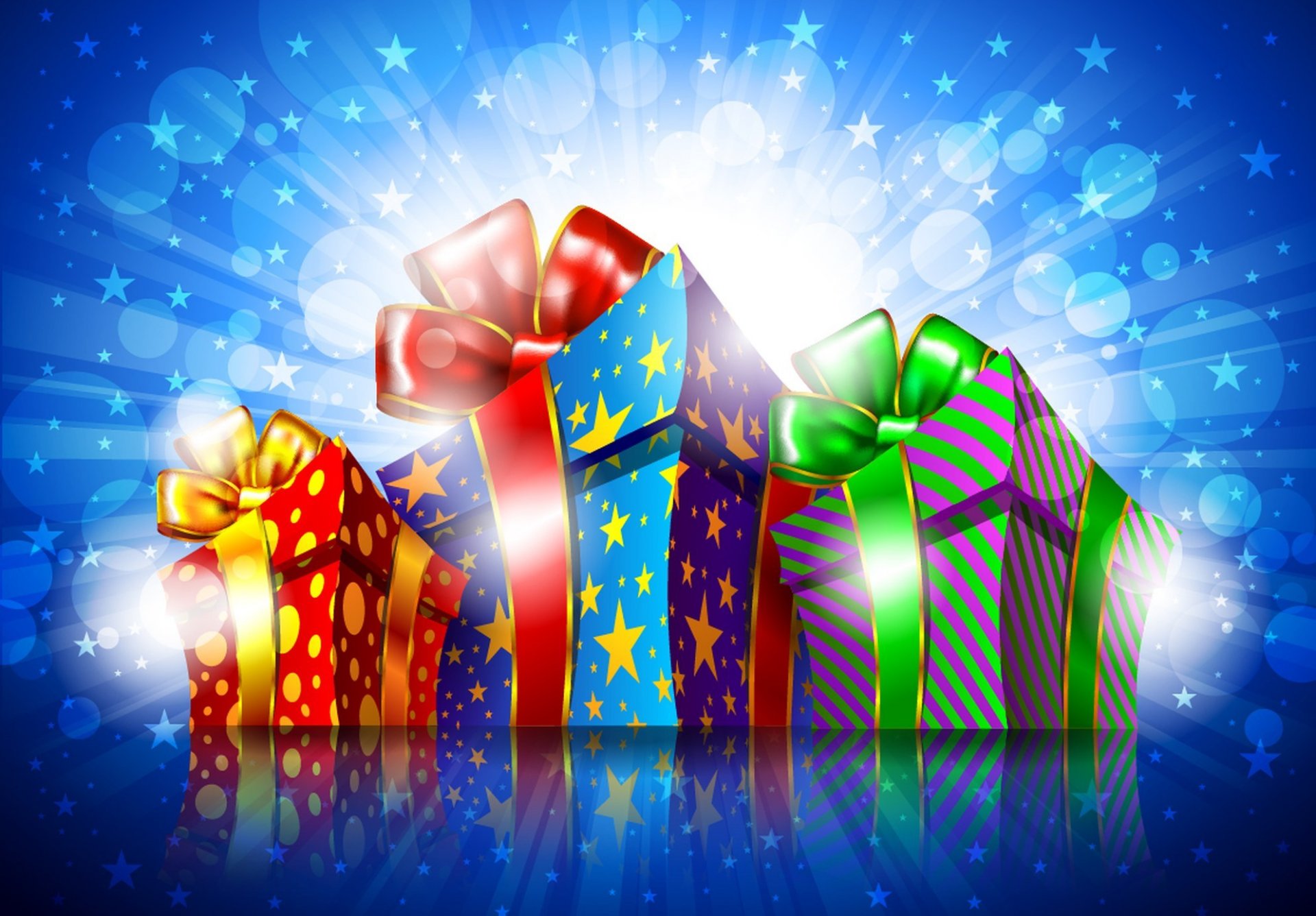 Pour les vacances, beaucoup de cadeaux colorés avec des arcsPour les vacances, beaucoup de cadeaux colorés avec des arcs