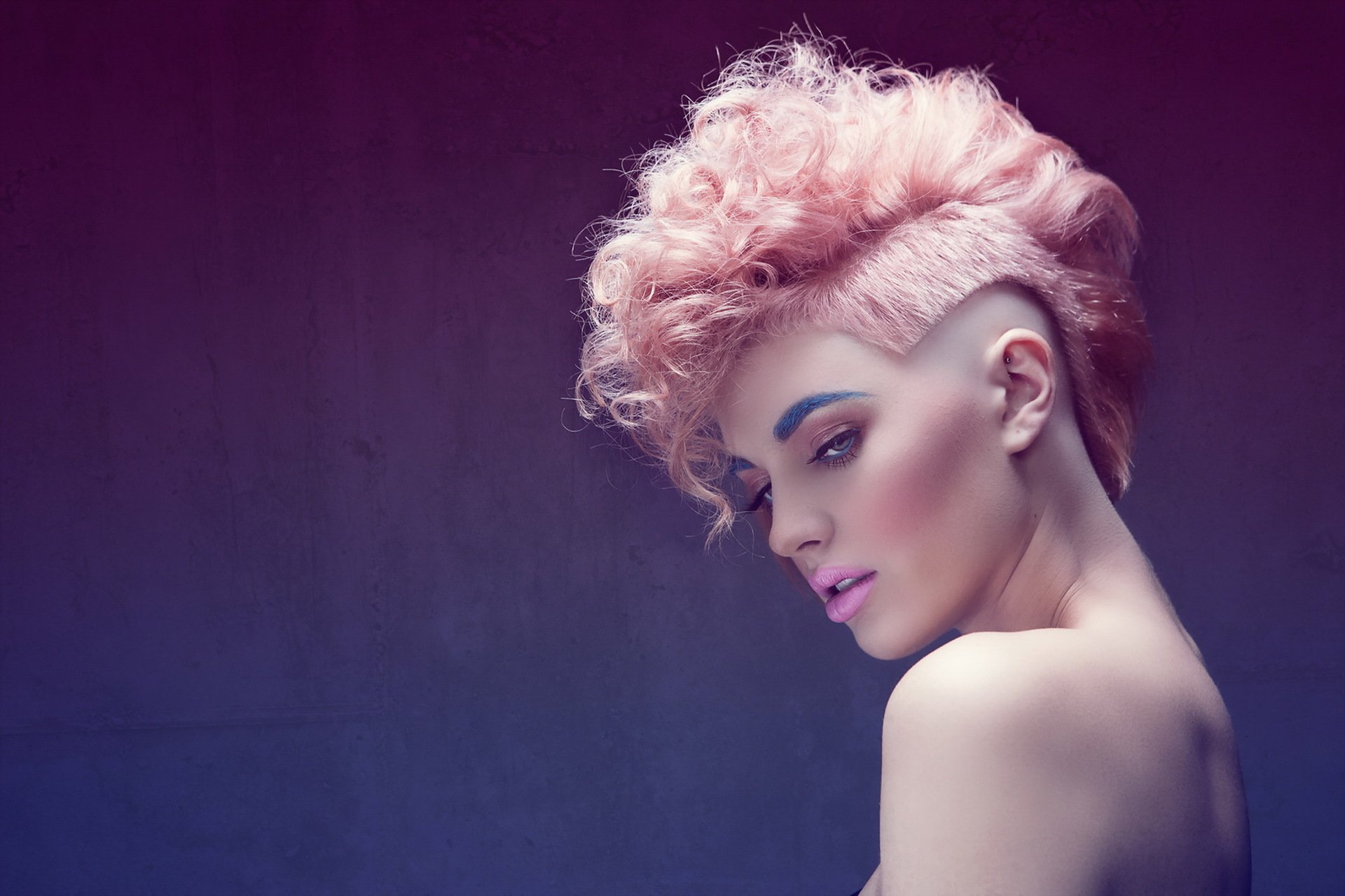 Fille sur fond violet avec beau maquillage