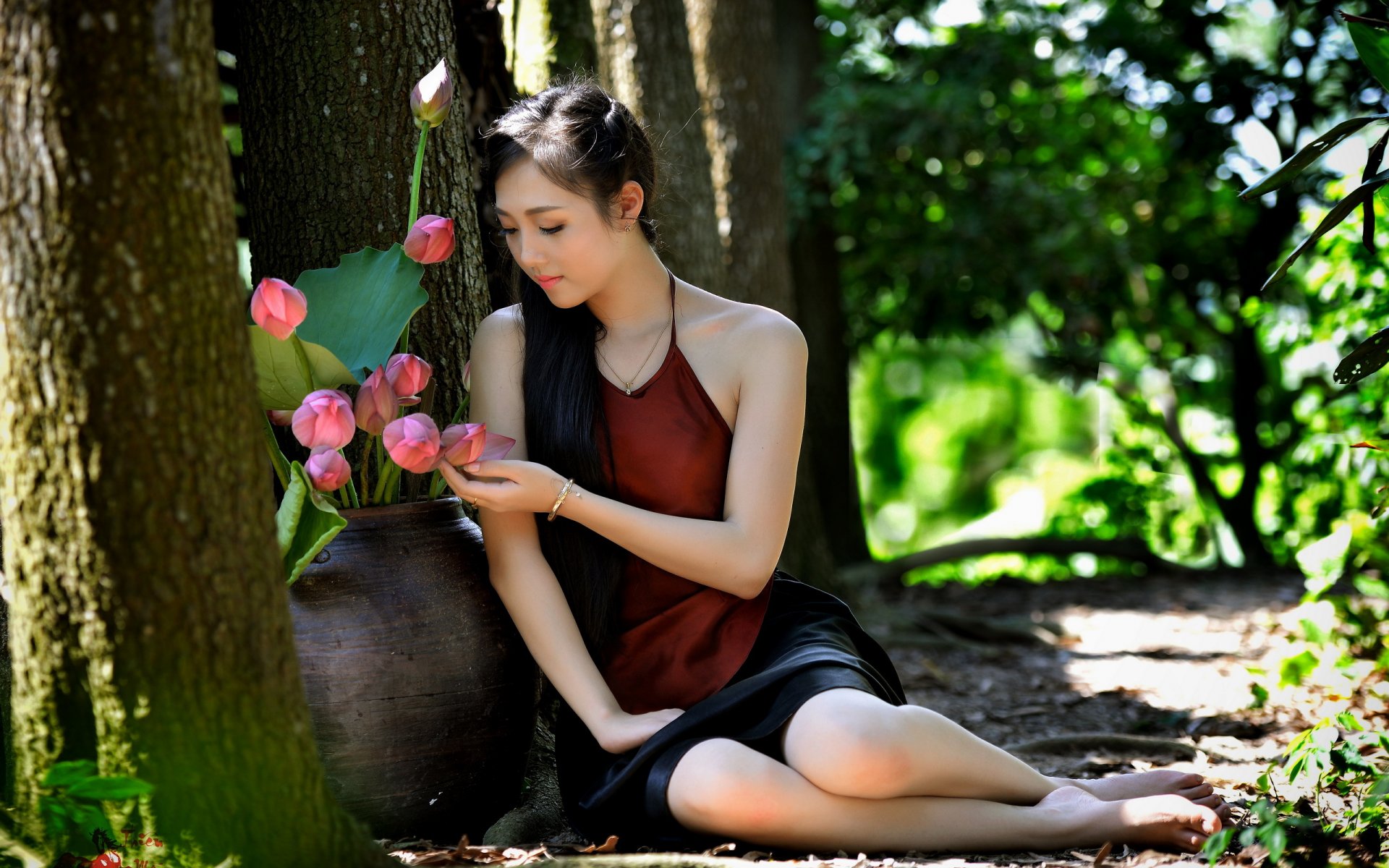 Fille asiatique en robe noire