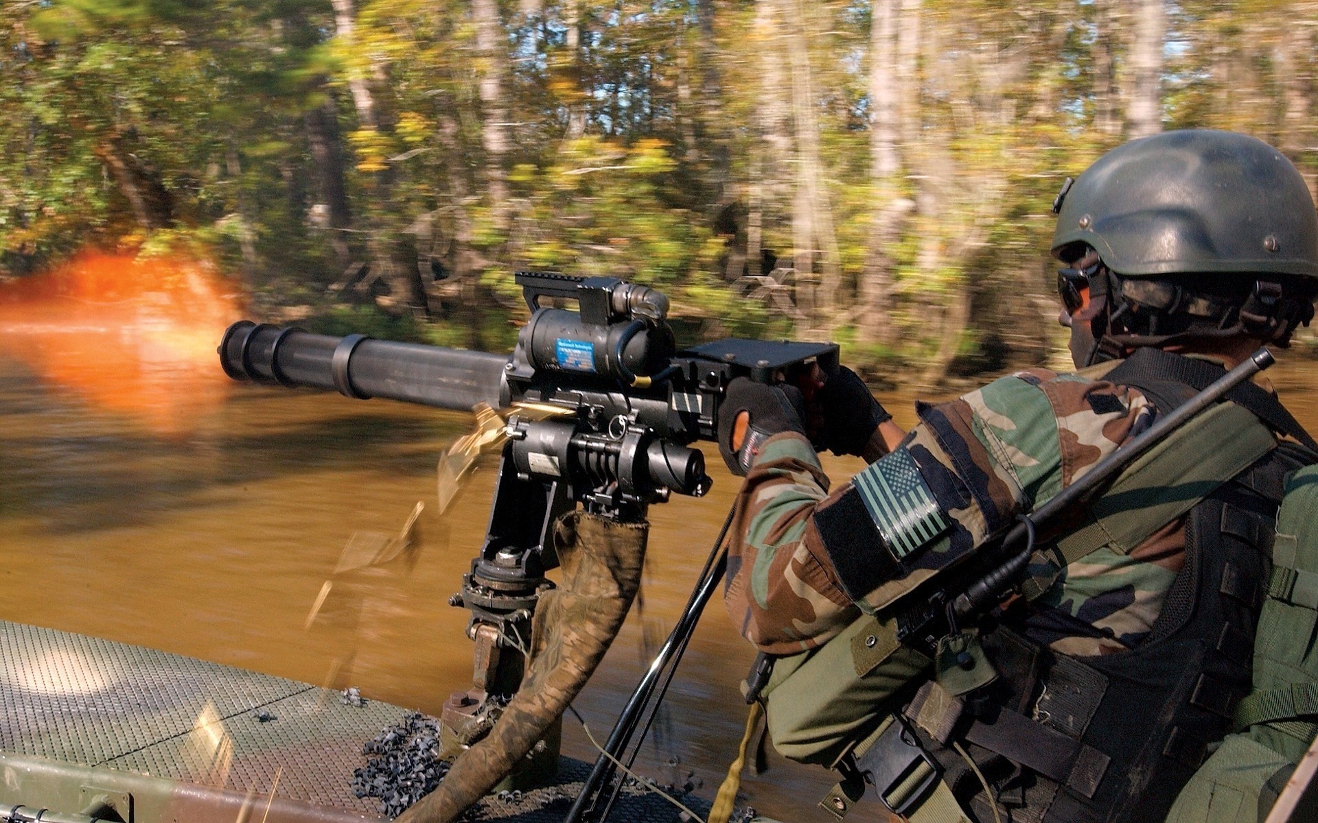 Un soldat tire le feu sur un arbre