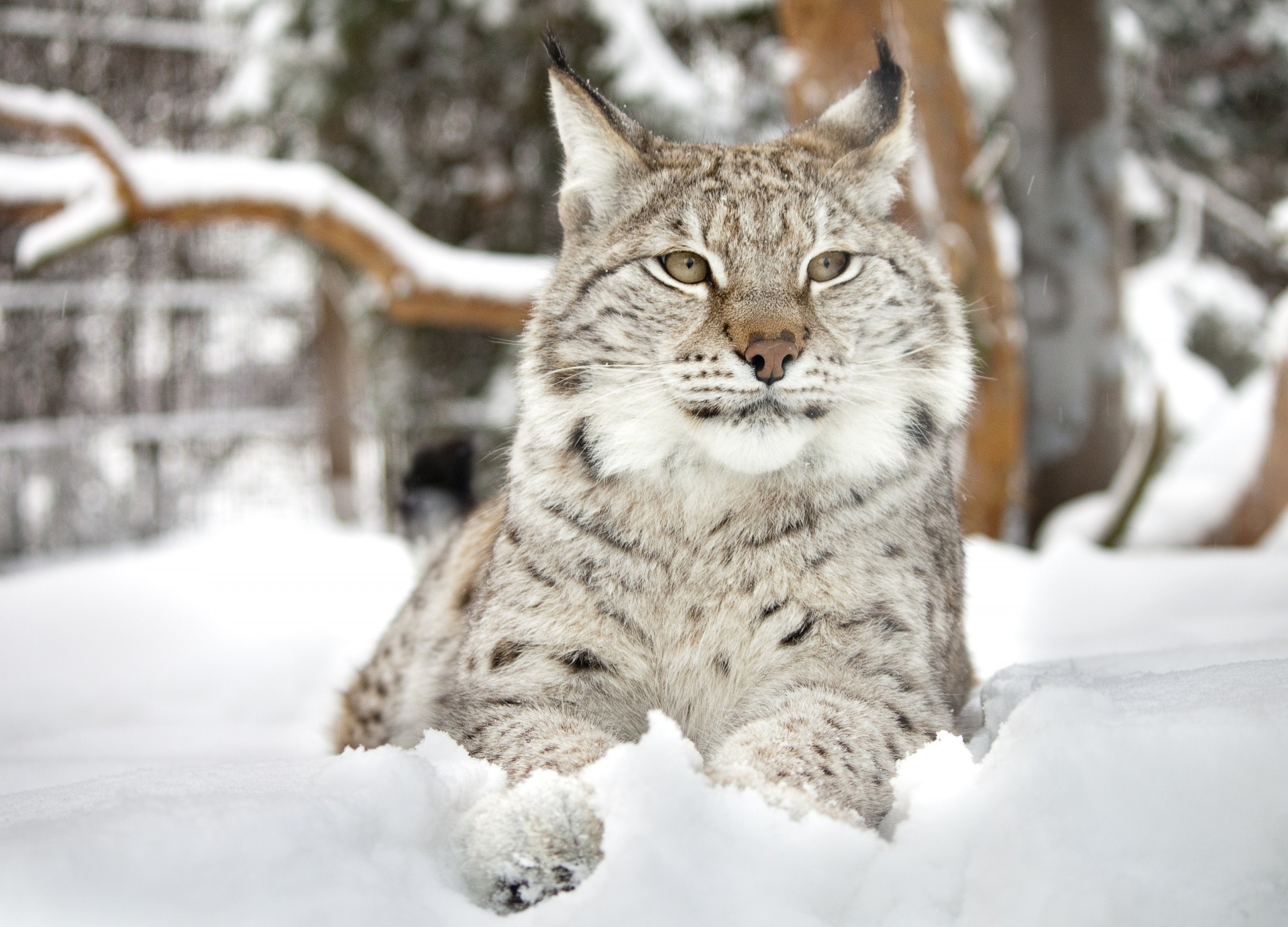 Lynx sur l'arbre. Chat sauvage. Forêt