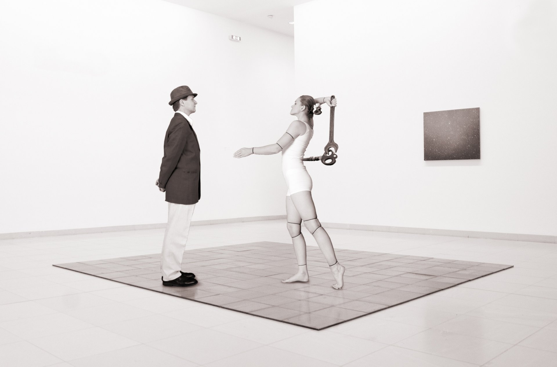 Machine manuelle sur fond rouge