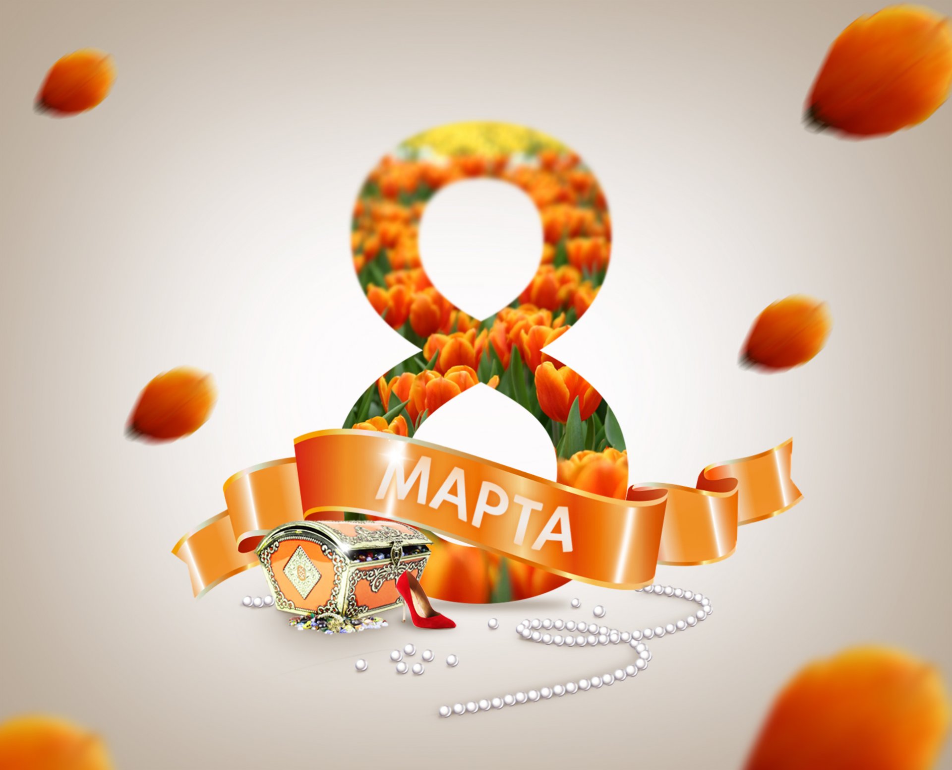 Carte postale le 8 mars avec des tulipes pour les femmes