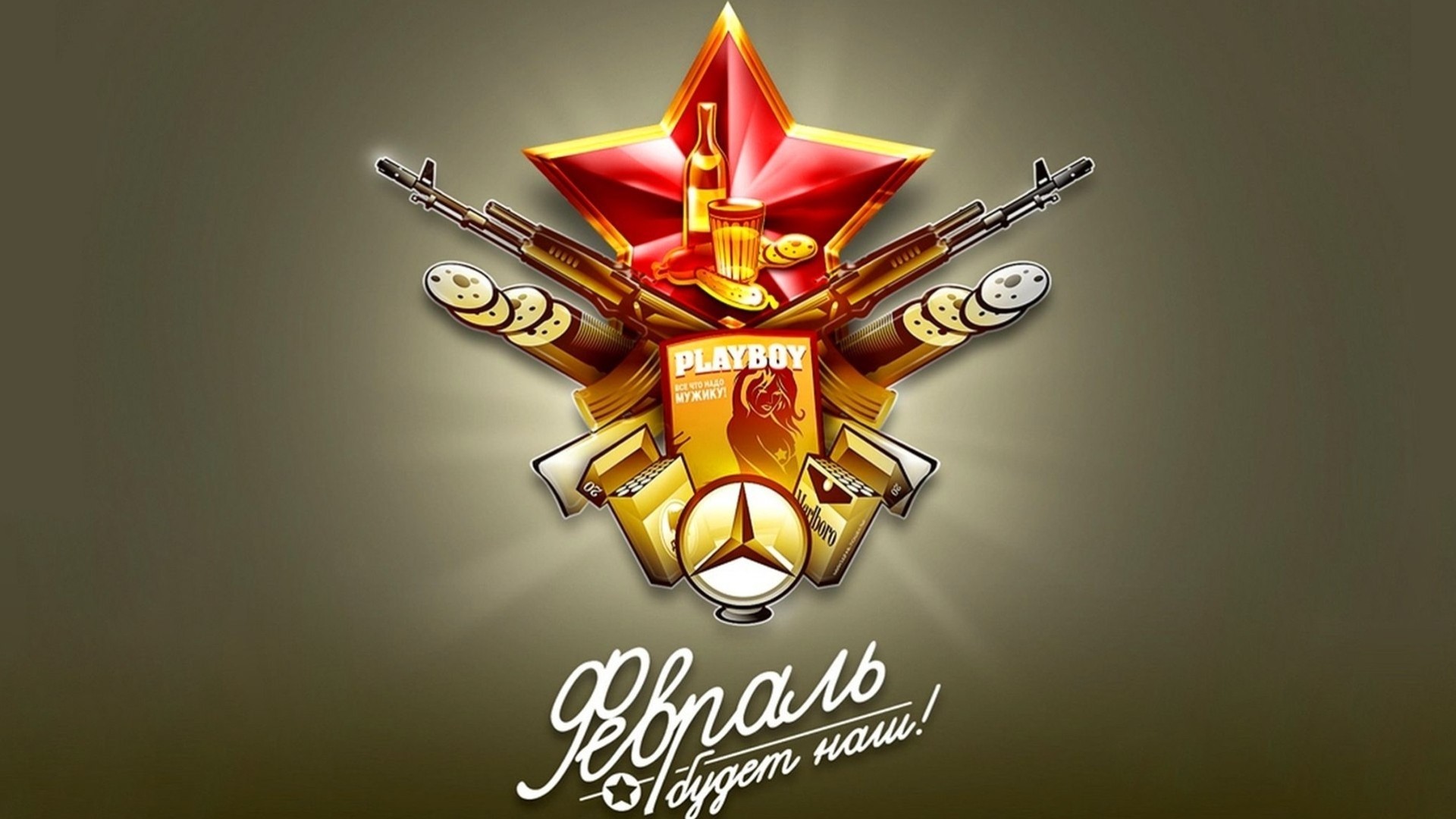 Dessin avec une étoile et des armes pour la fête des hommes