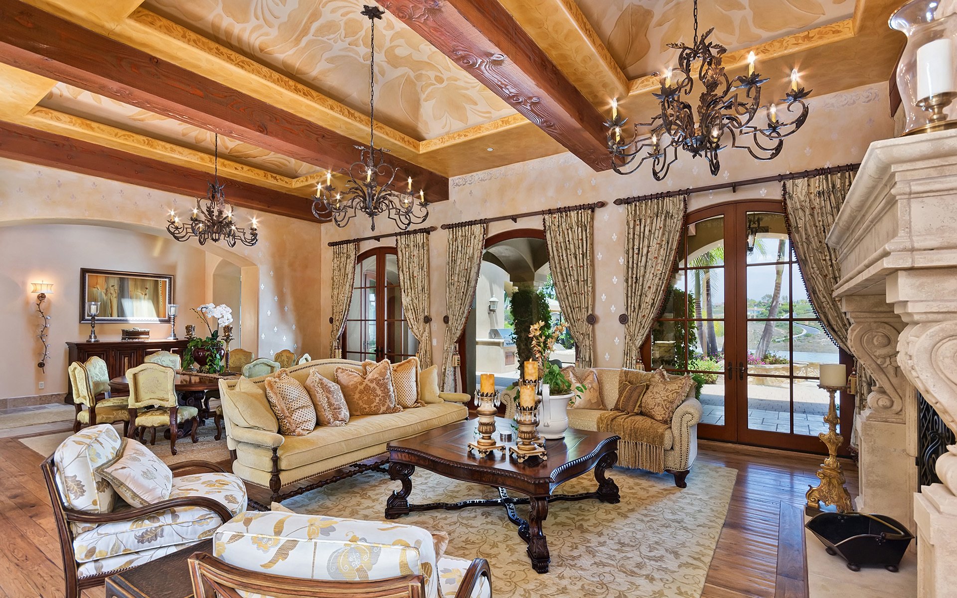 Intérieur de la maison avec cheminée et meubles dans des tons brunsIntérieur de la maison avec cheminée et meubles dans des tons bruns