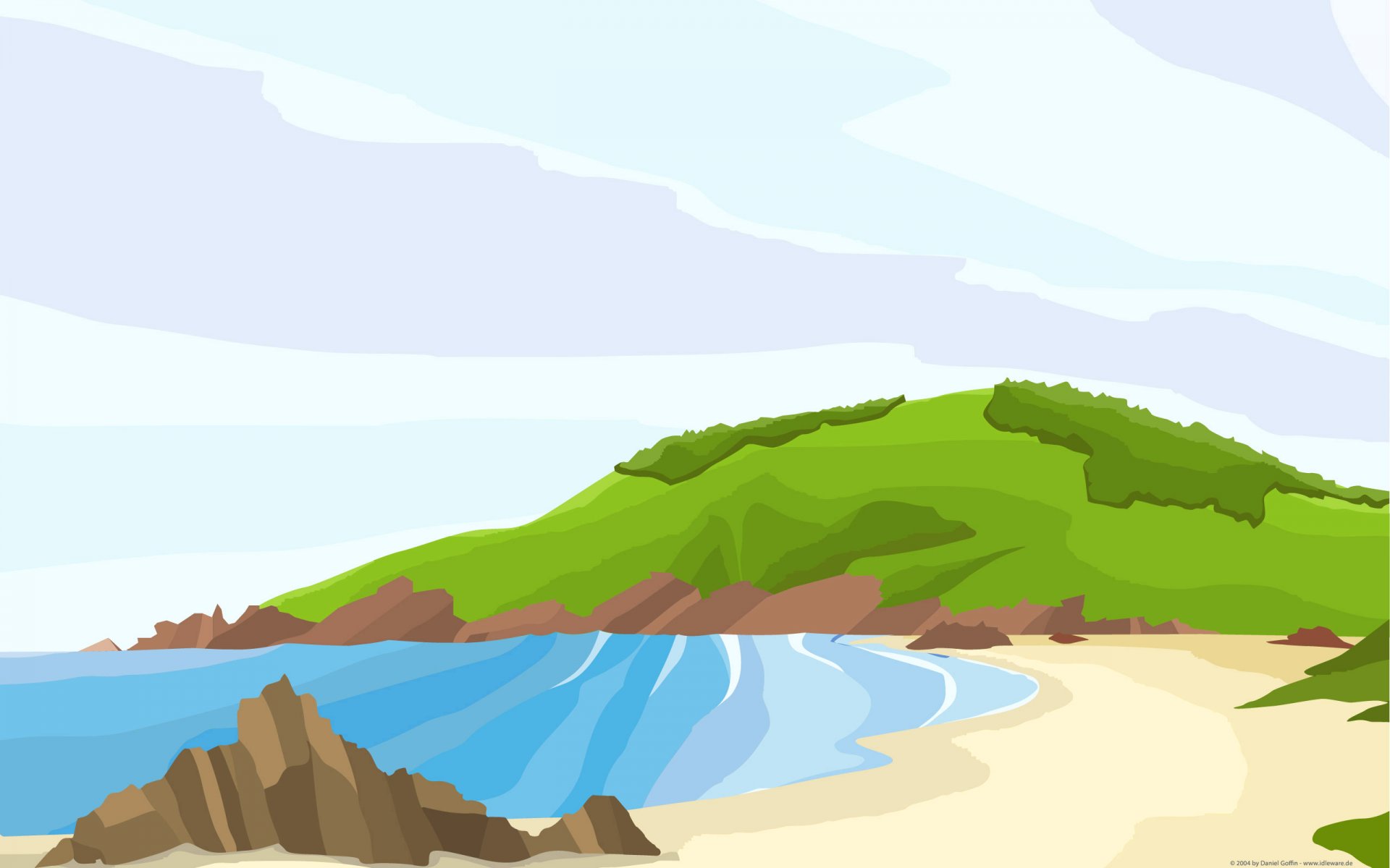 Paysage vectoriel du lac près des montagnes vertesPaysage vectoriel du lac près des montagnes vertes