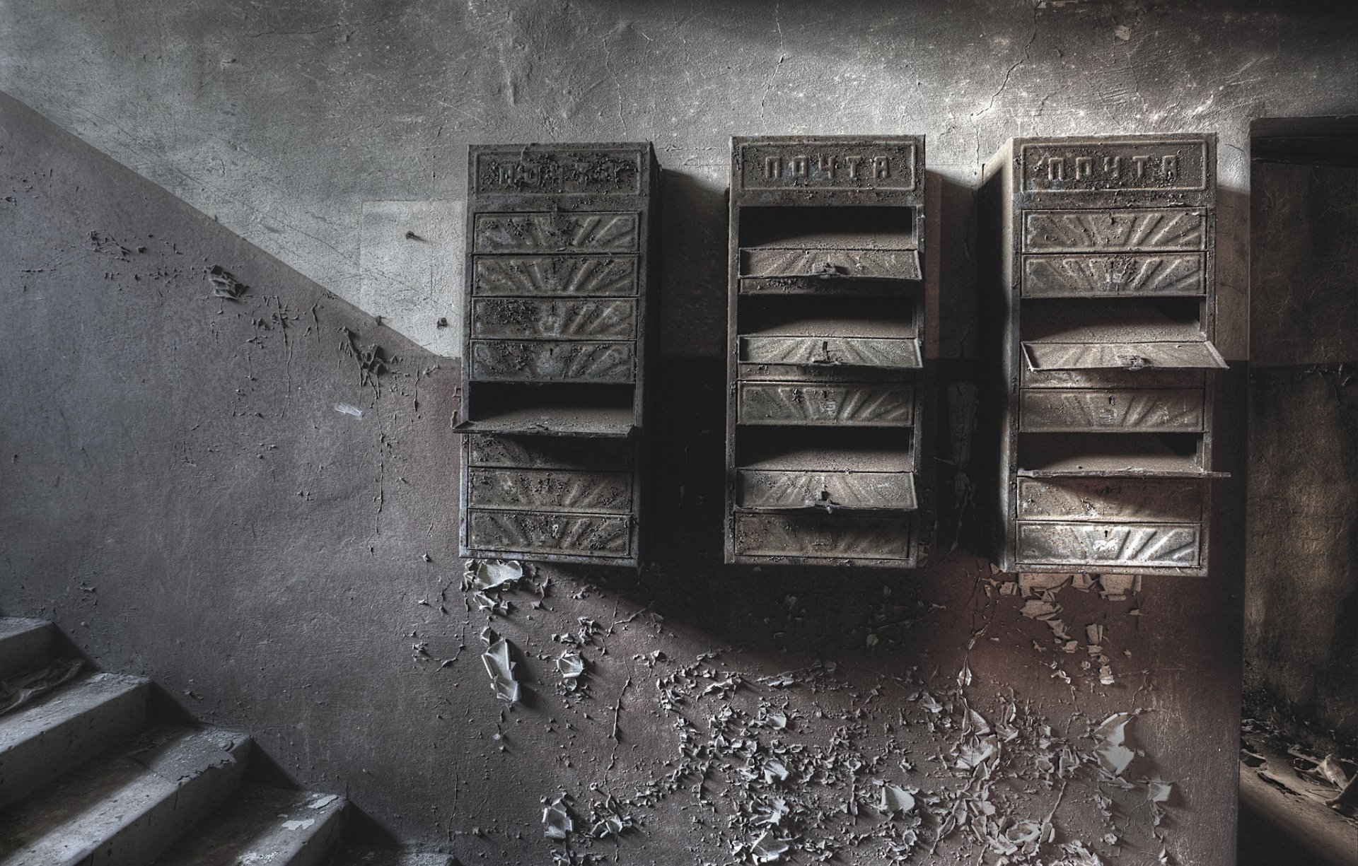 Une entrée en lambeaux avec des boîtes aux lettresUne entrée en lambeaux avec des boîtes aux lettres
