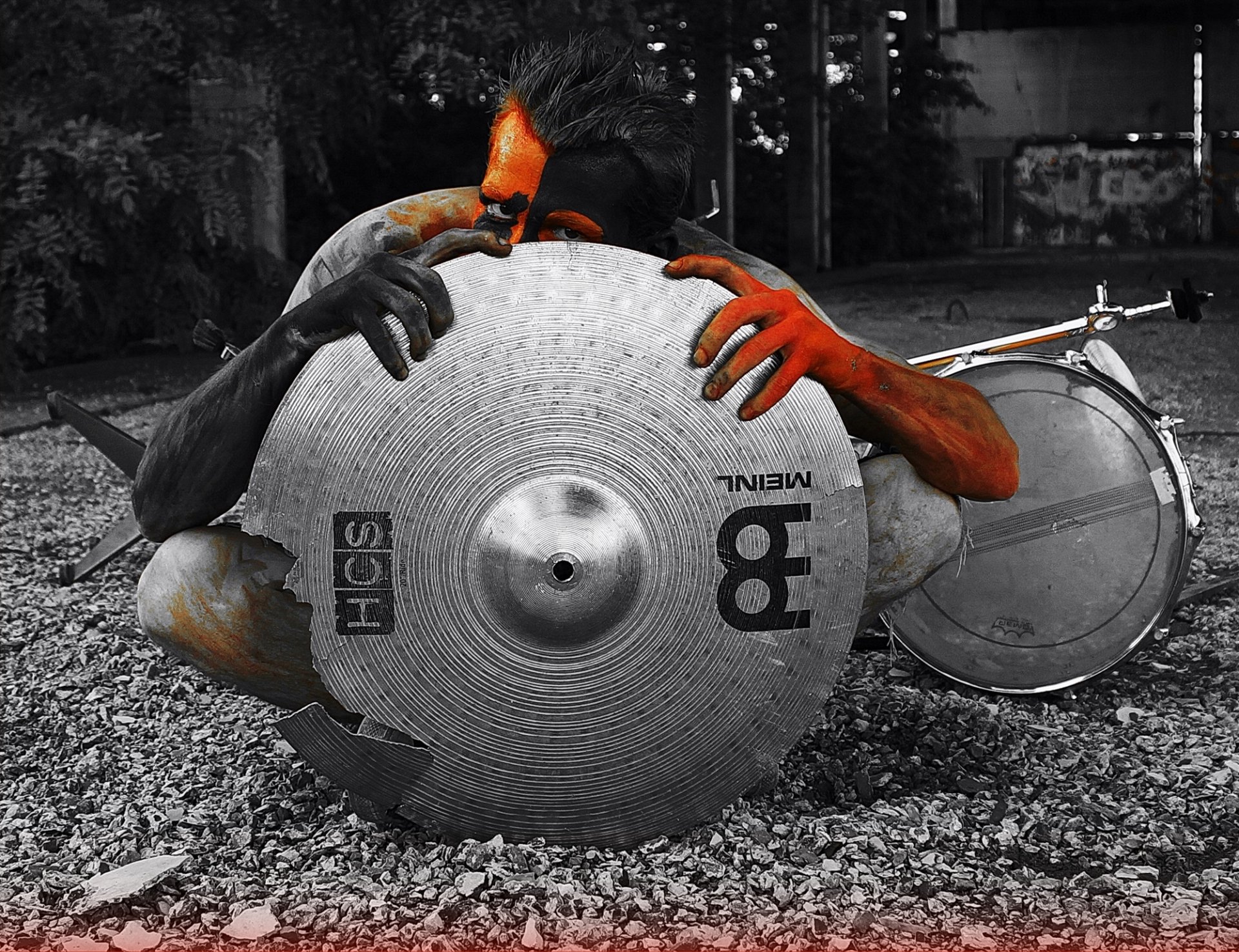 Batteur dans le Grimm avec les mains rouges et noires