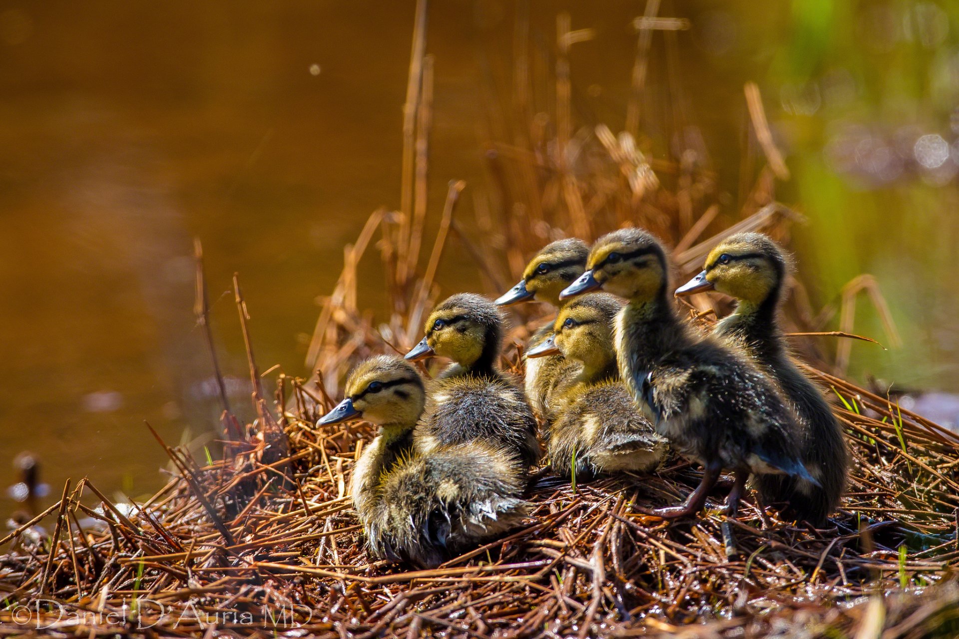 Une couvée de petits canetons attend maman avec de la nourritureUne couvée de petits canetons attend maman avec de la nourriture