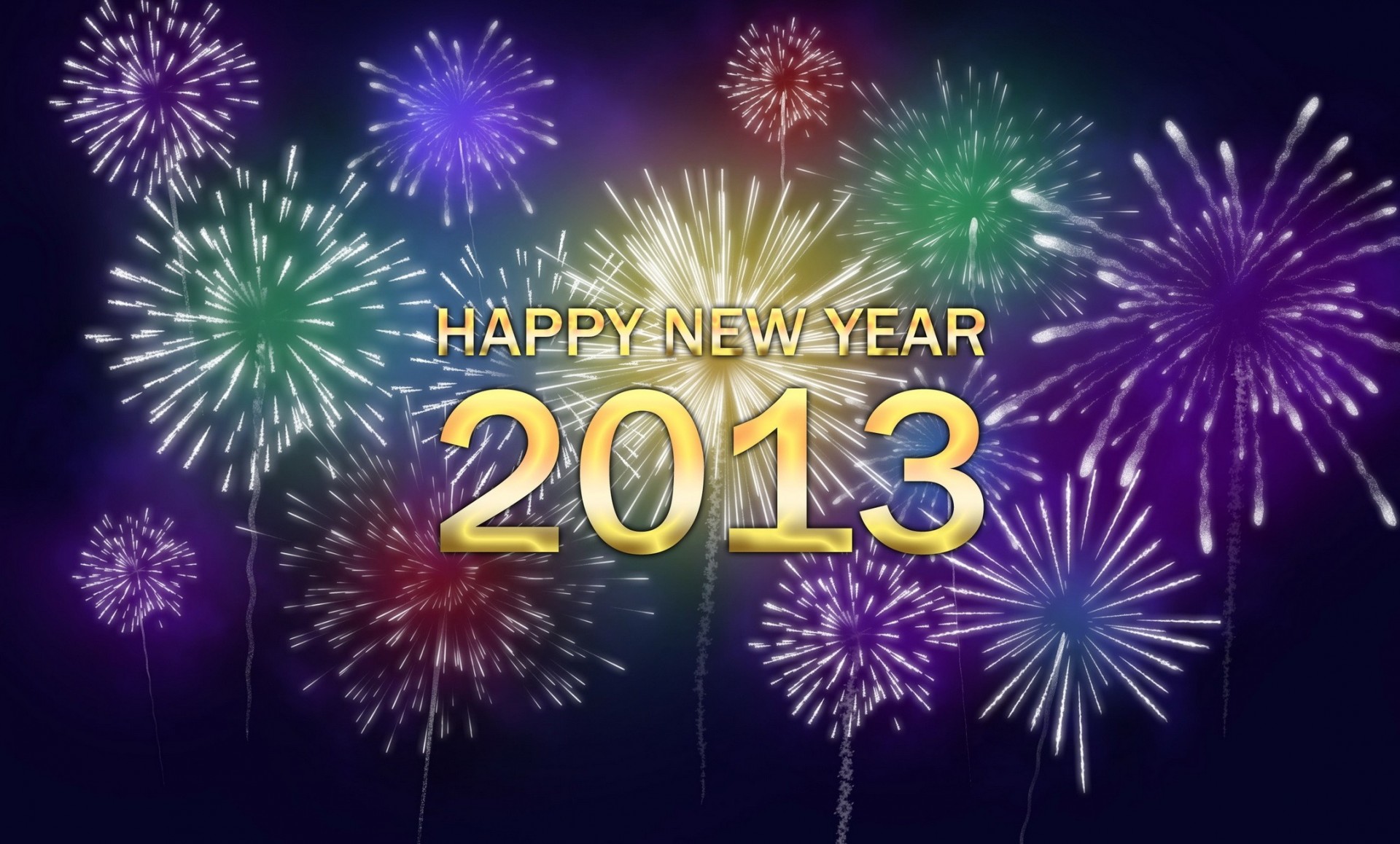 Feux d'artifice du nouvel an couleurs rouges, violets et bleus