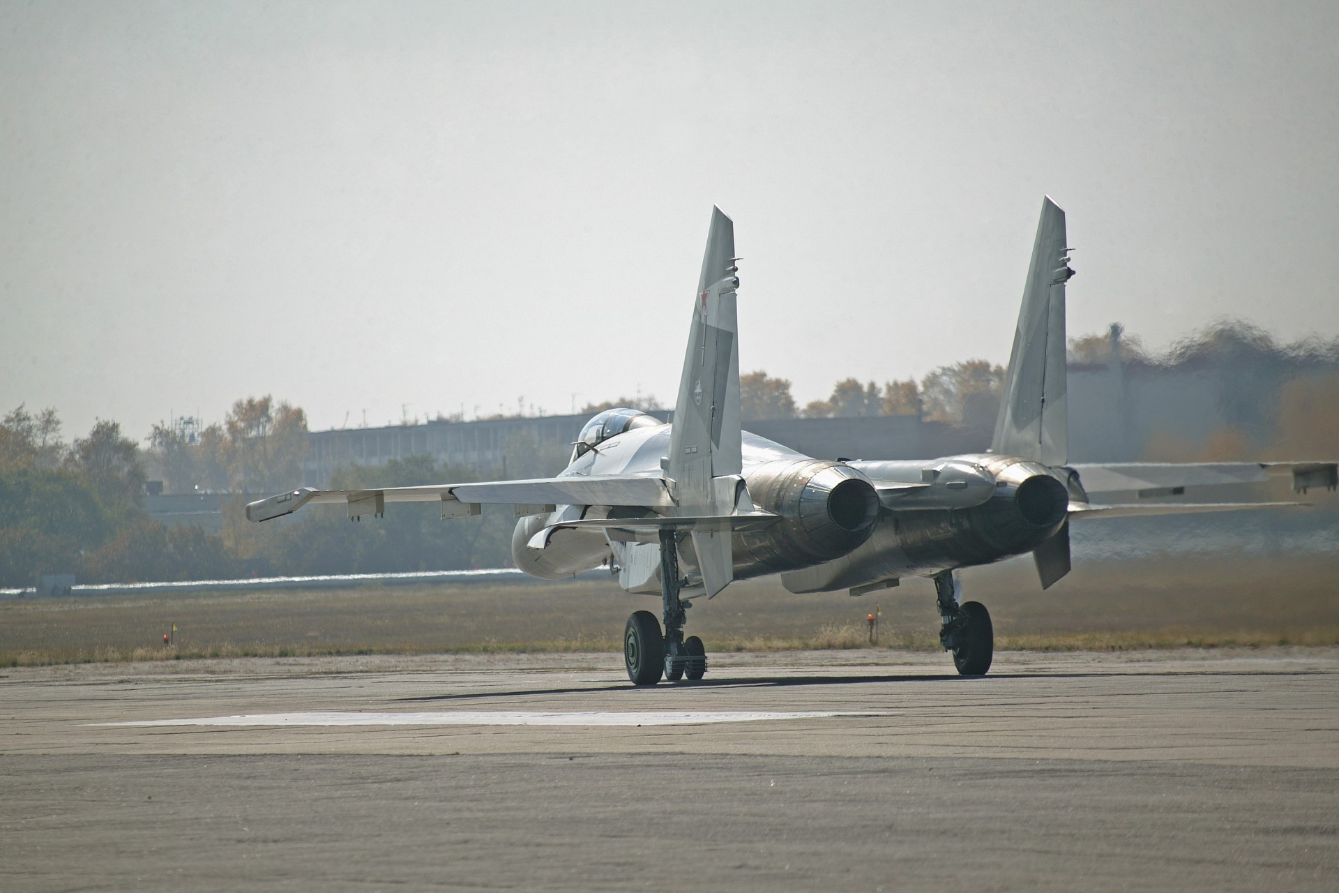 Avion de chasse russe est sur la piste