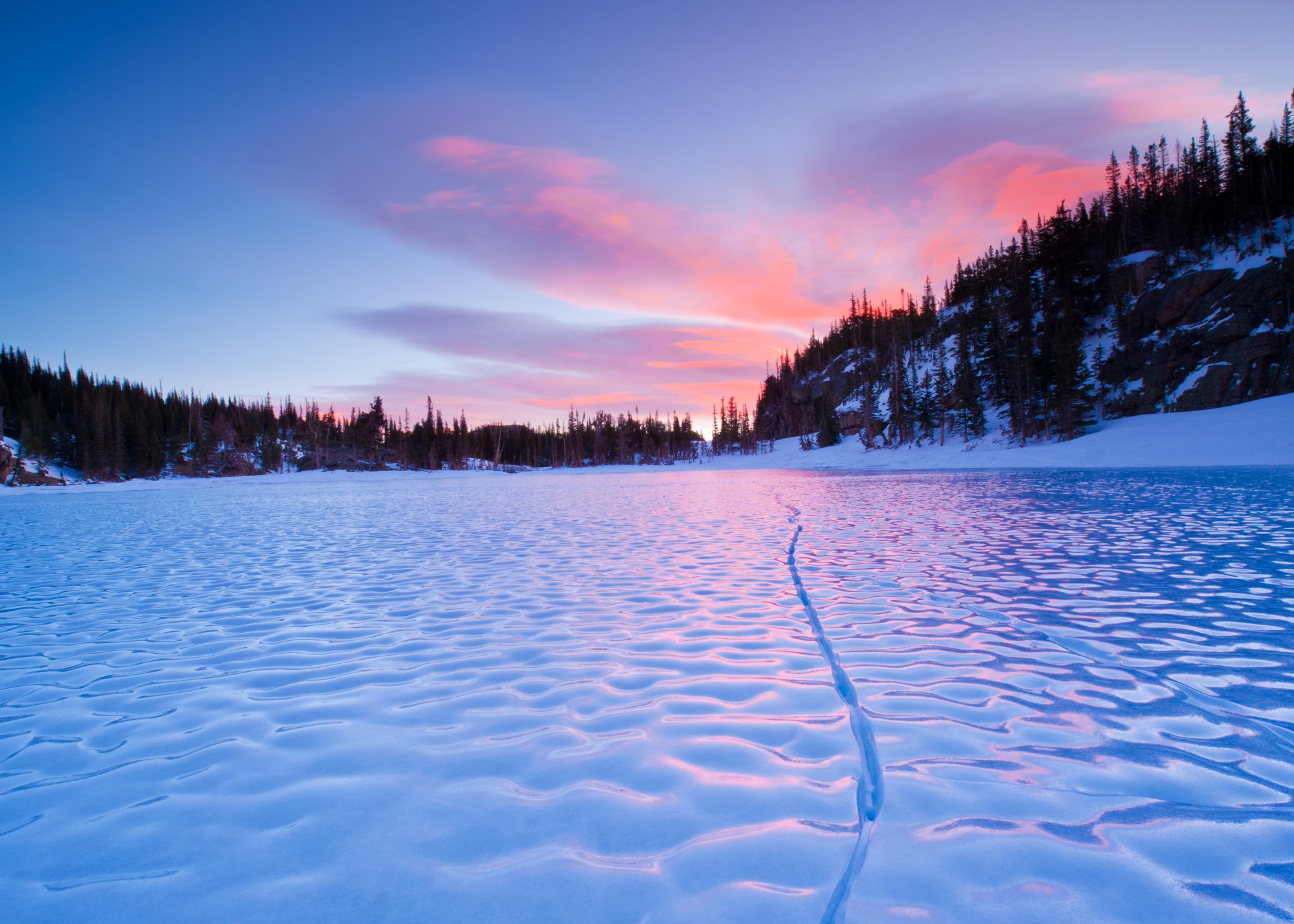 Rivière d hiver avec des rives envahies par la forêt, arbres couverts de neige