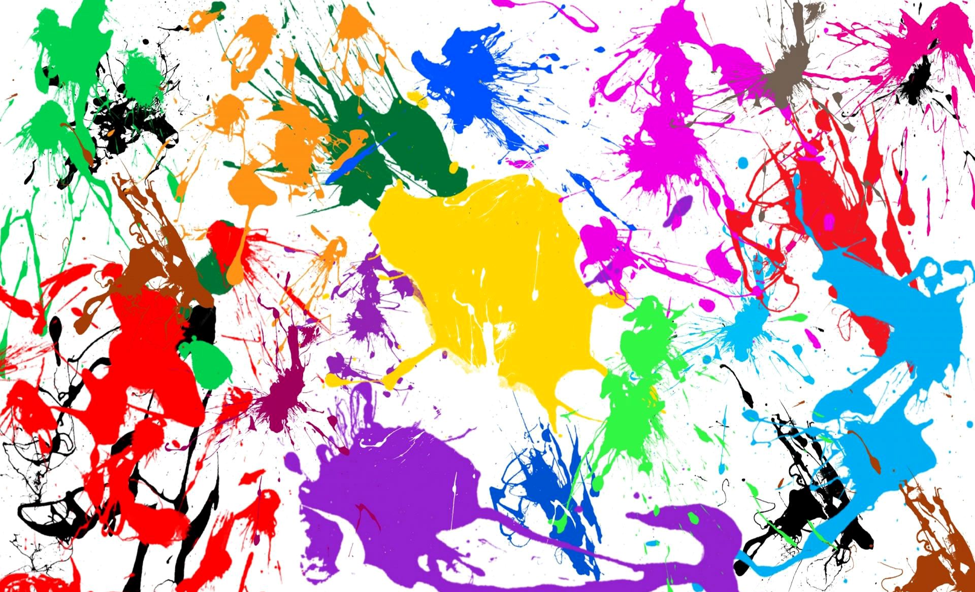 TACHES MULTICOLORES ET TACHES DE PEINTURE SUR FOND BLANC