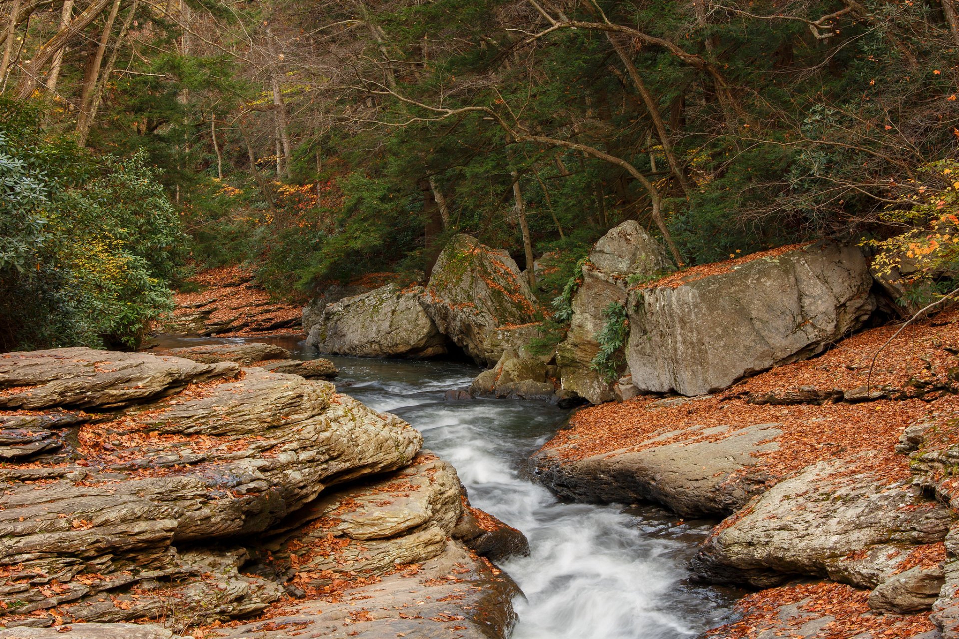 Ruisseau orageux parmi les pierres massives dans la forêtRuisseau orageux parmi les pierres massives dans la forêt