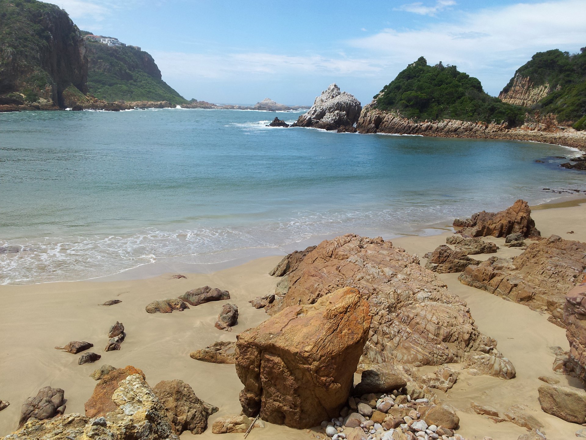 Vue de luxe: soleil, piscine, palmiers, pierres, montagnes et arbres