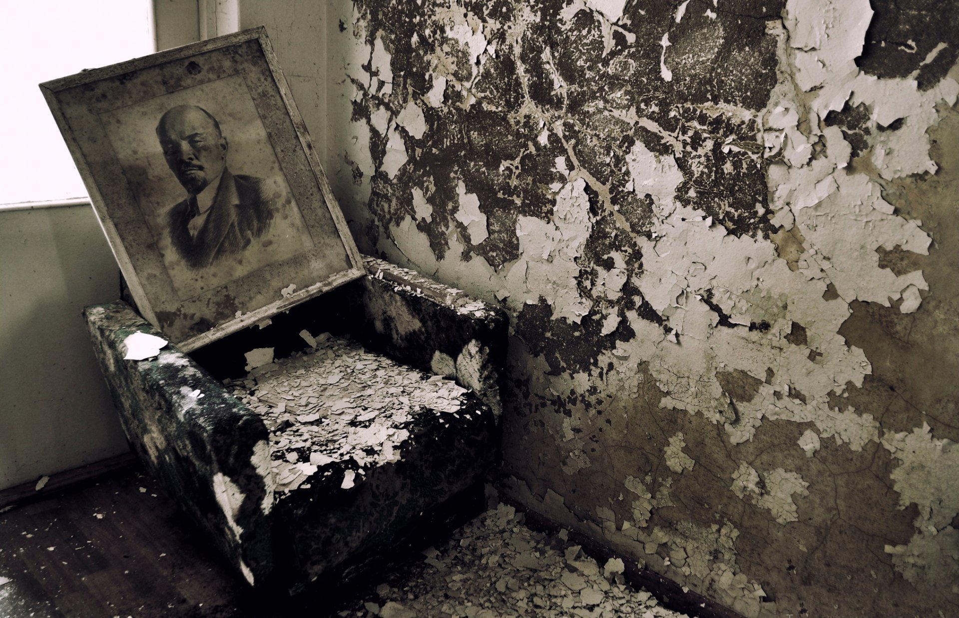 Vieux portrait de lénine dans une maison abandonnéeVieux portrait de Lénine dans une maison abandonnée