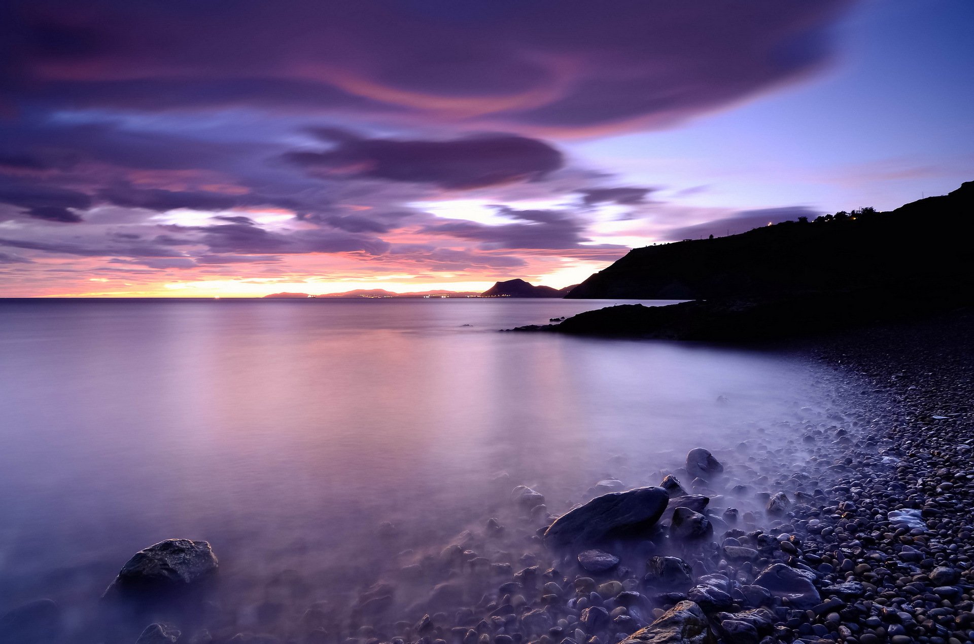 Plage de nuit pourpre