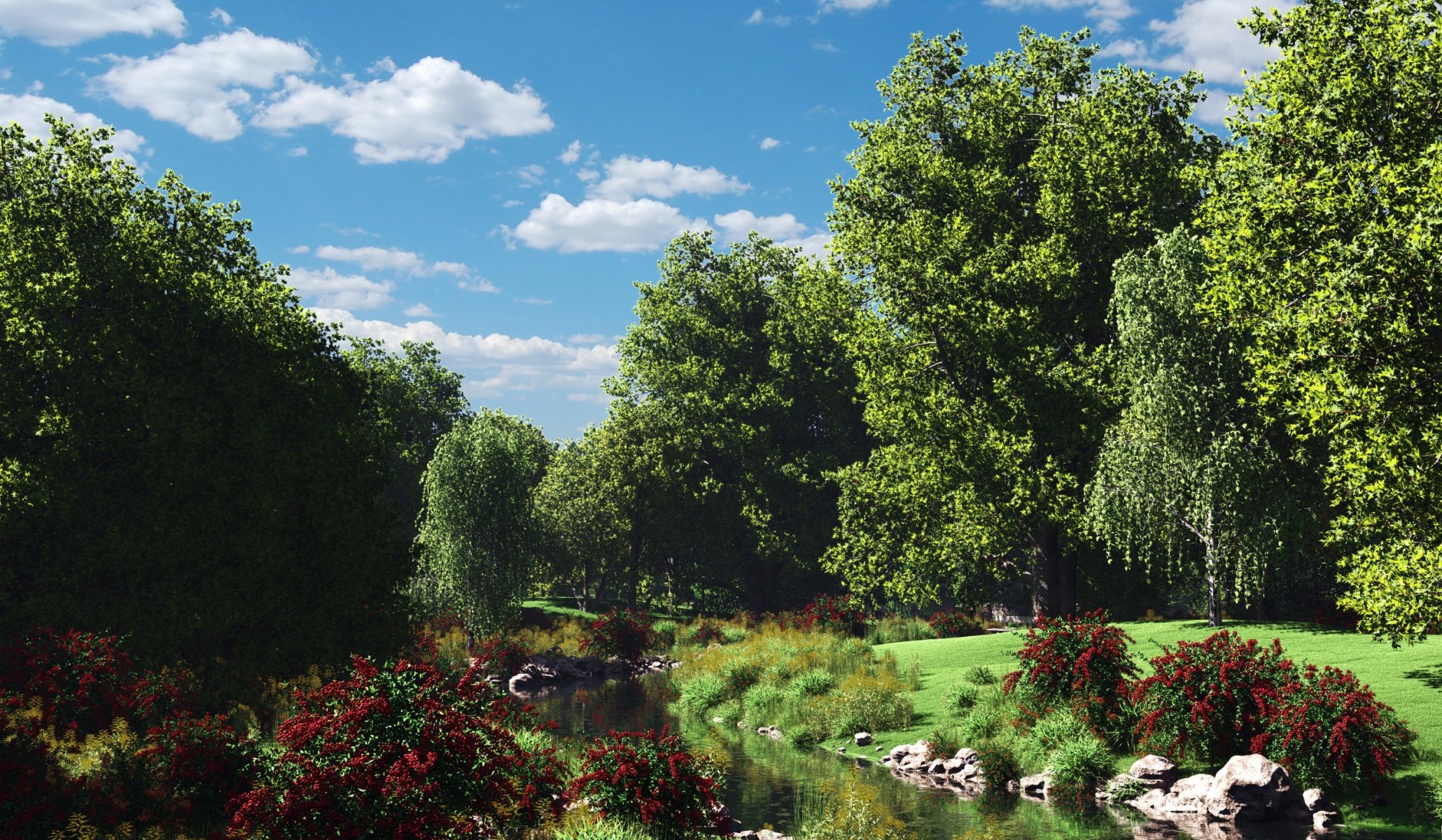 La nature magnifique de la forêt, un ruisseau, des fleurs dans la prairieLa nature magnifique de la forêt, un ruisseau, des fleurs dans la prairie