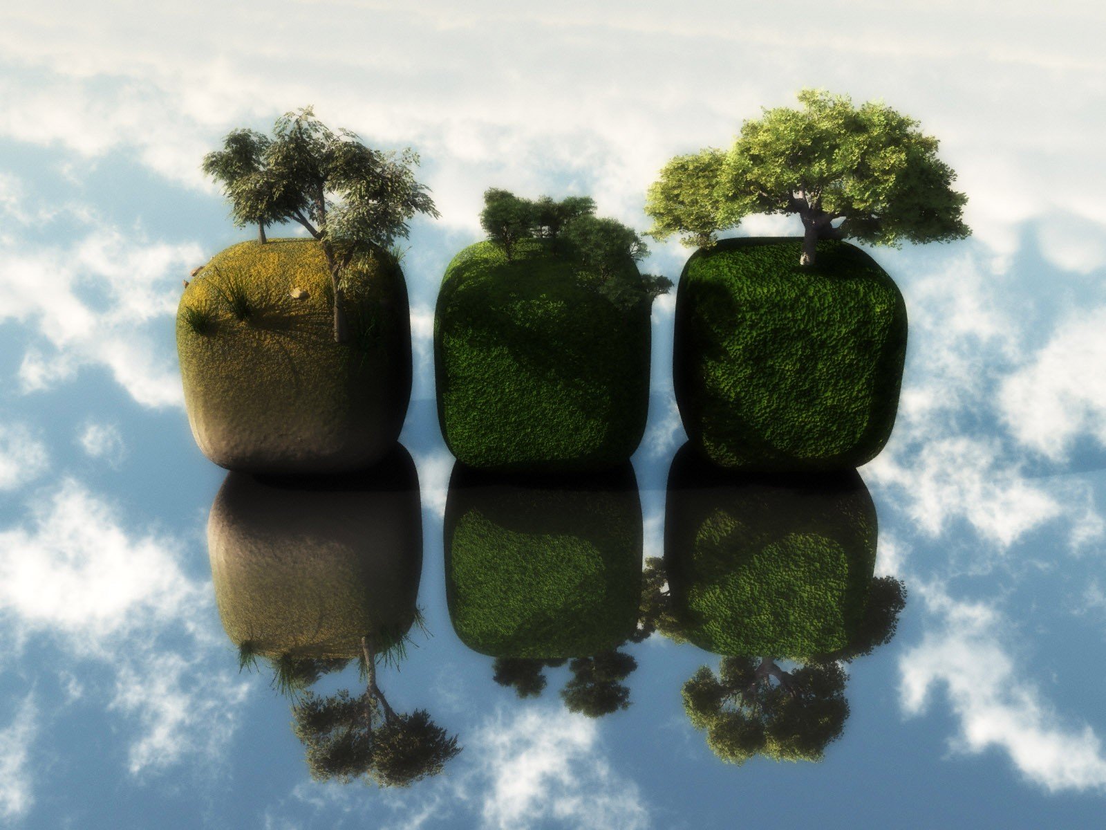 La réflexion dans les nuages de cube avec des arbresLa réflexion dans les nuages de cube avec des arbres