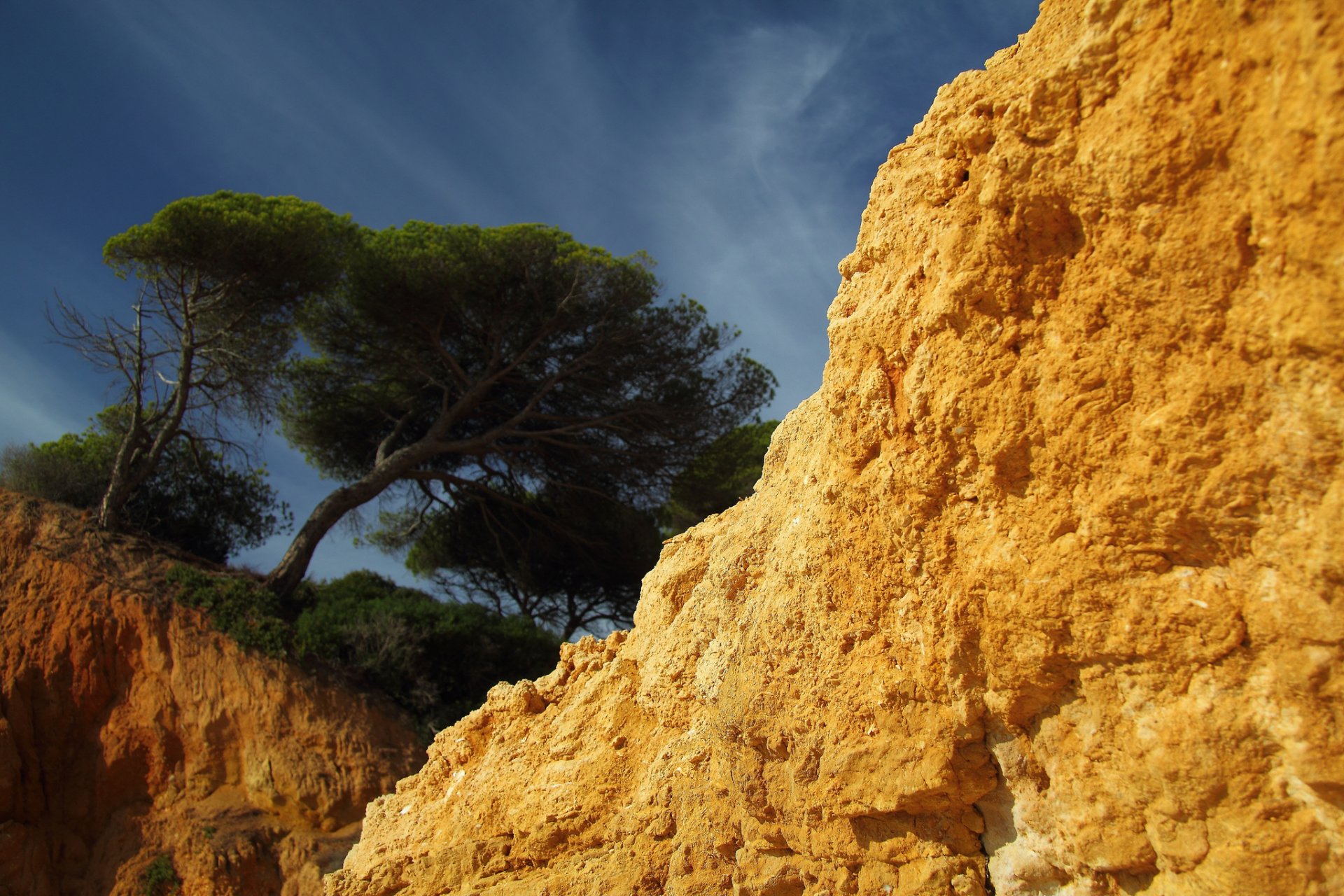 Arbres qui poussent sur les rochers à ciel ouvert