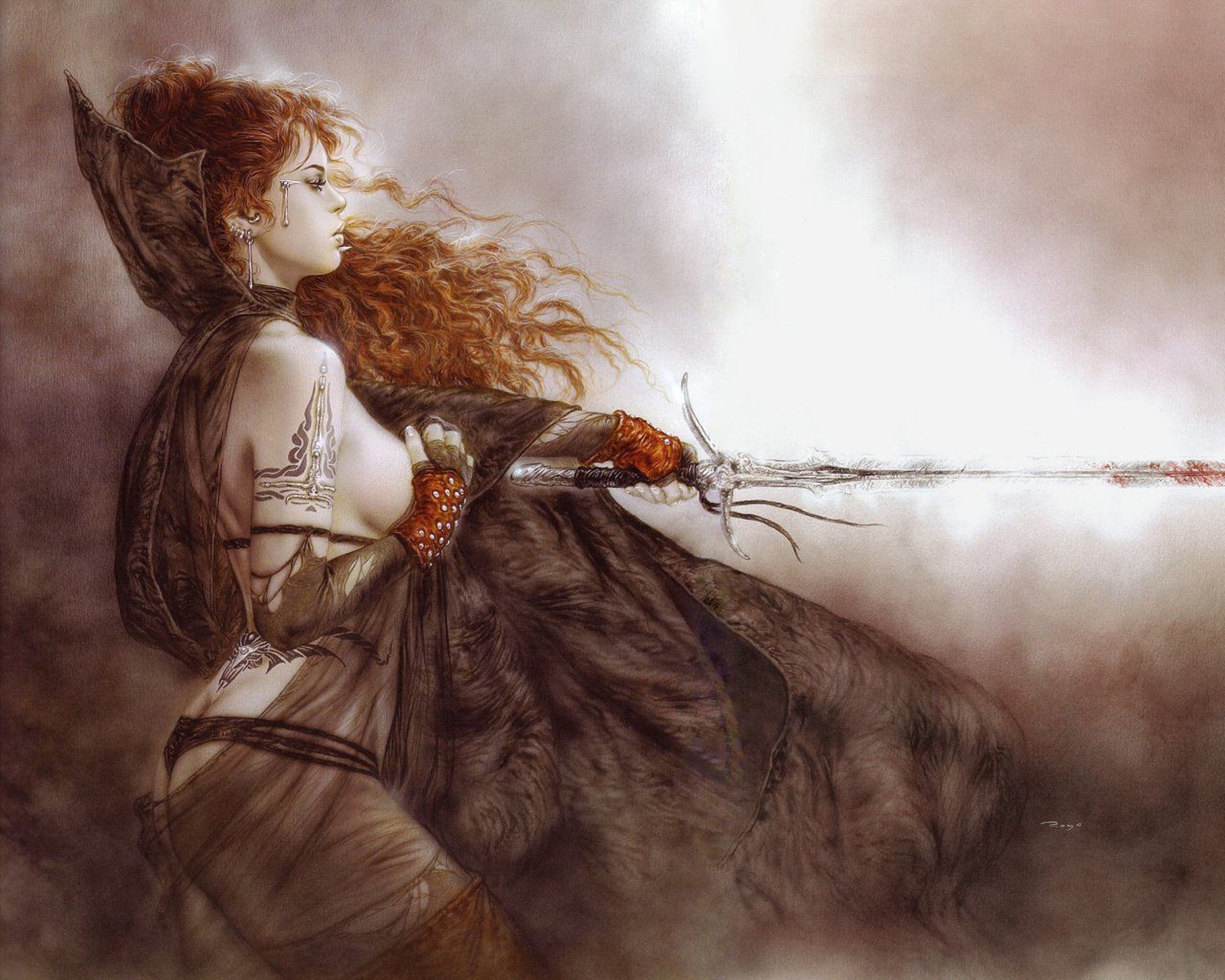 Une bête rousse avec un tatouage. art filles avec épéeUne bête Rousse avec un tatouage. Art filles avec épée