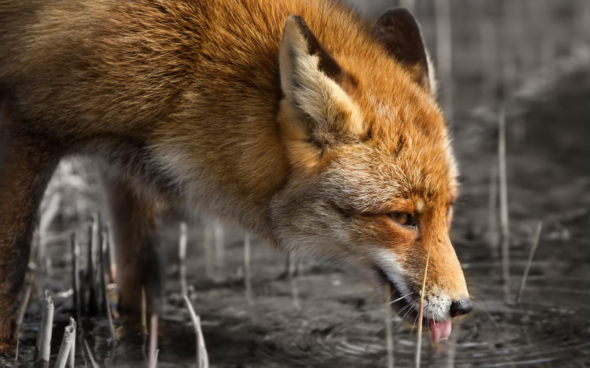 Reflet de la langue d'un chat roux dans une flaque d'eauReflet de la langue d'un chat roux dans une flaque d'eau