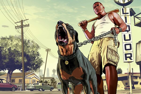 Chien Chop personnage principal Franklin du jeu GTA cinq art