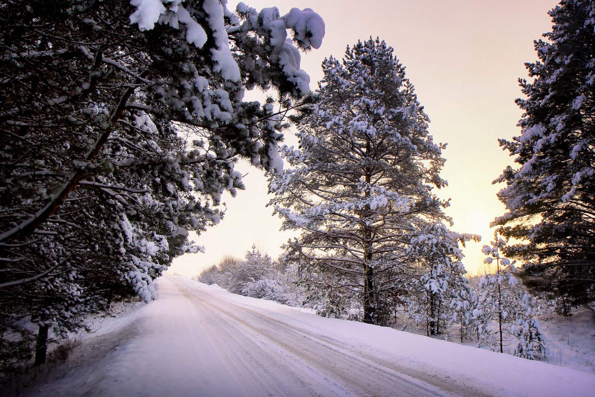 Fond d'écran champ avec des arbres près de la route