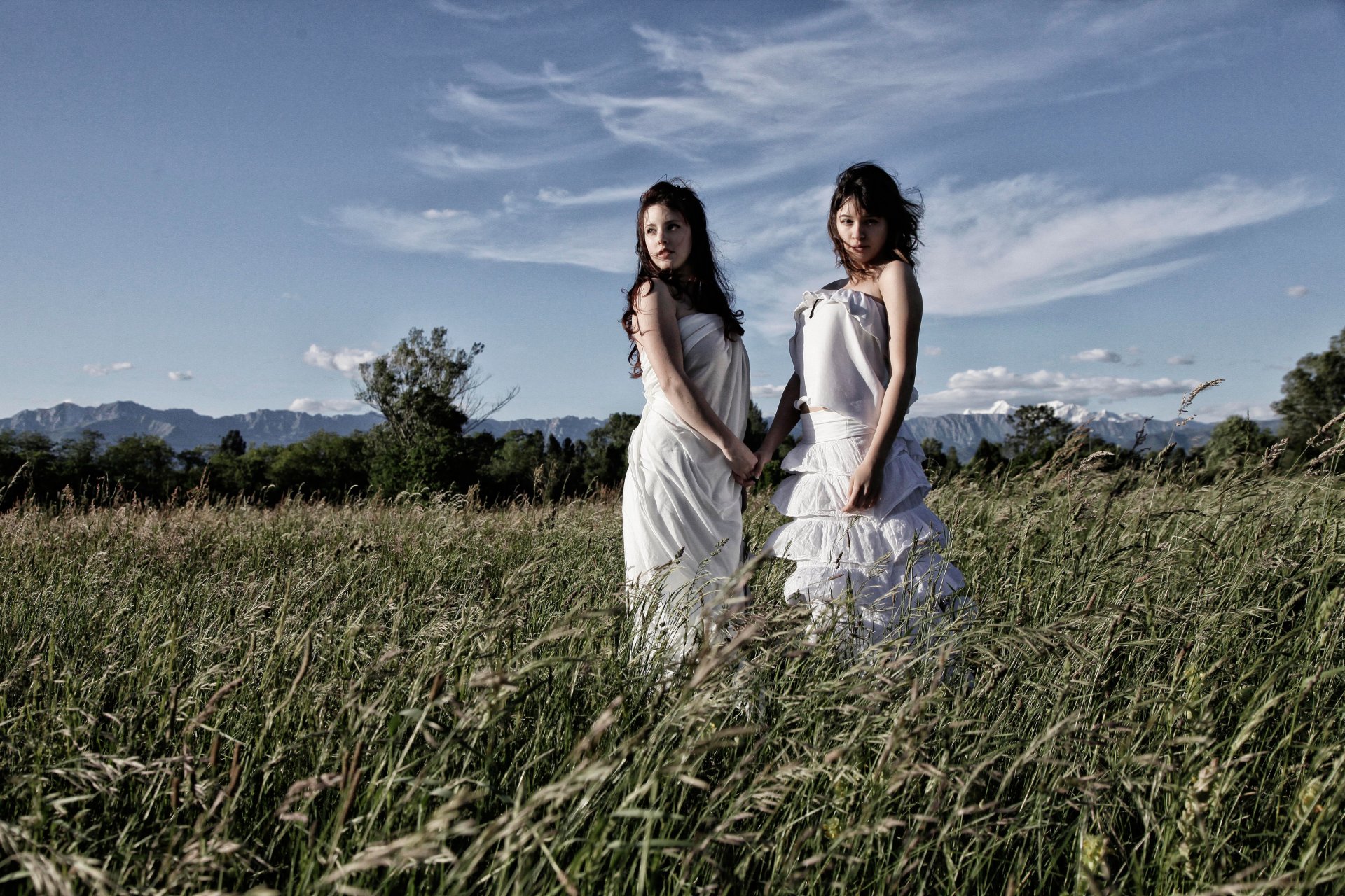 Les filles en robes blanches, et dans le champ vertLes filles en robes blanches, et dans le champ vert